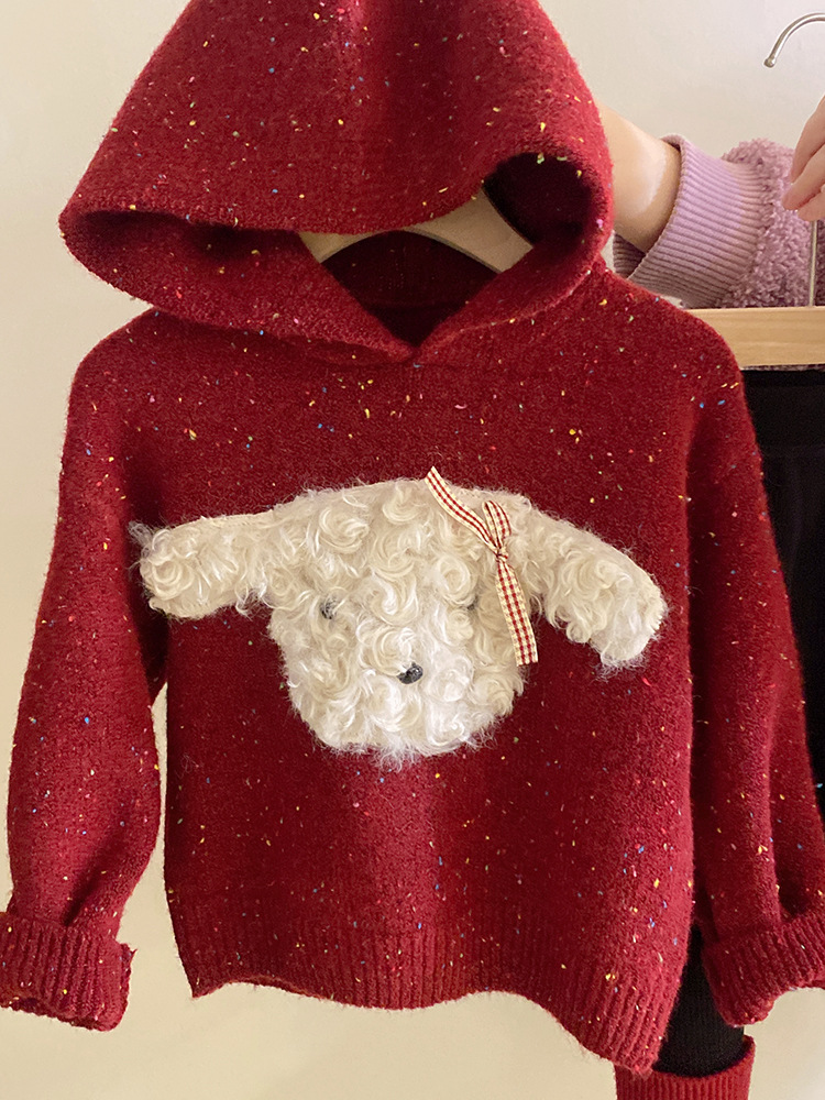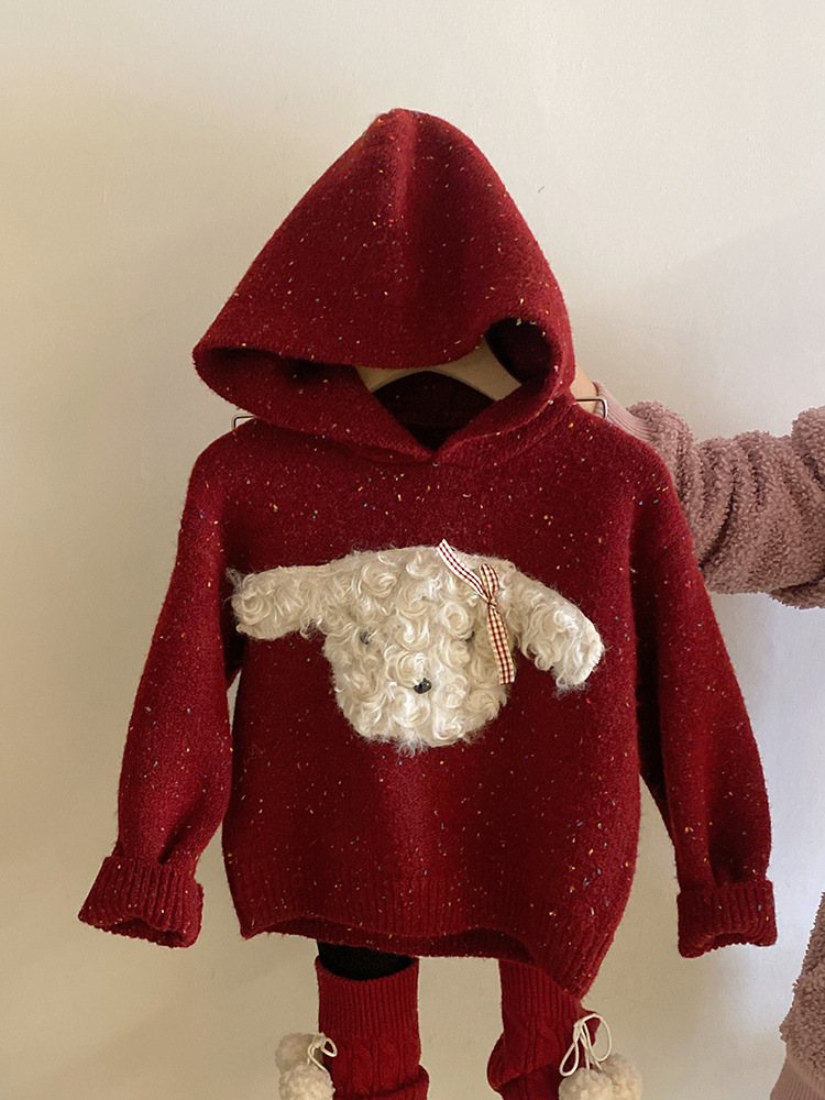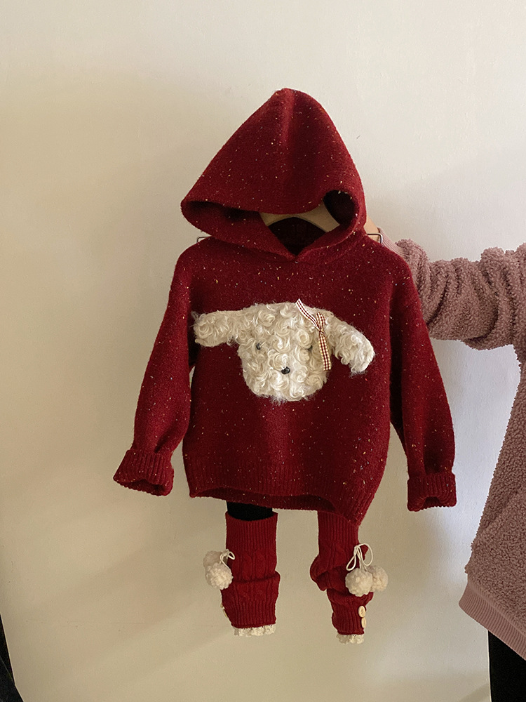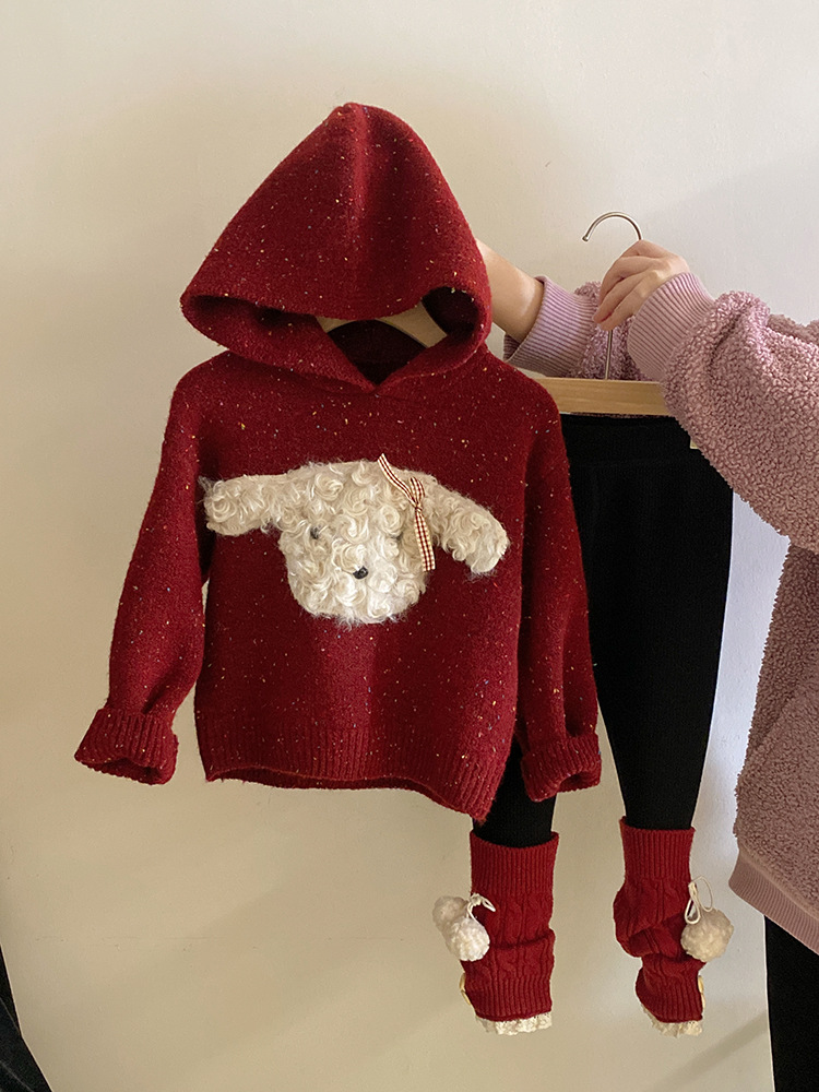 달콤한 색깔의 강아지 후드 스웨터의 여자 한국어 버전 2024 가을과 겨울 새 기모 바느질 레깅스 세트 조수