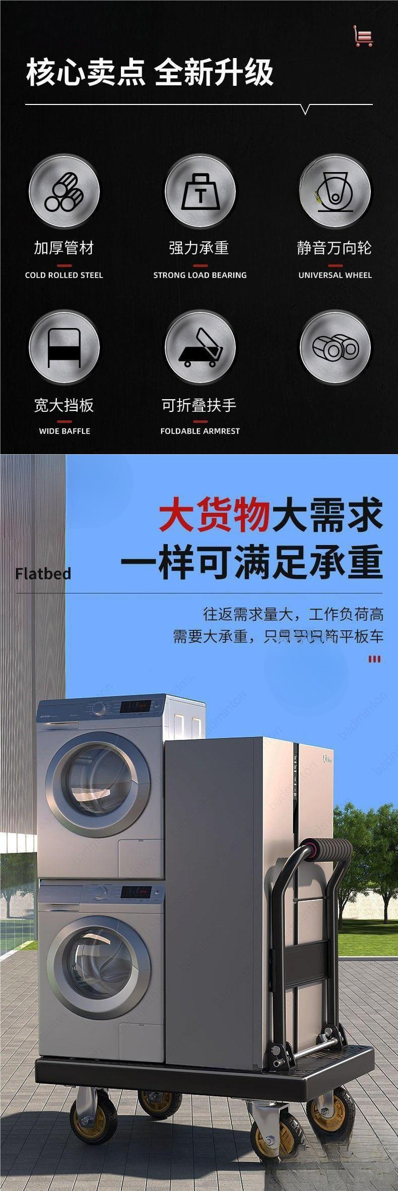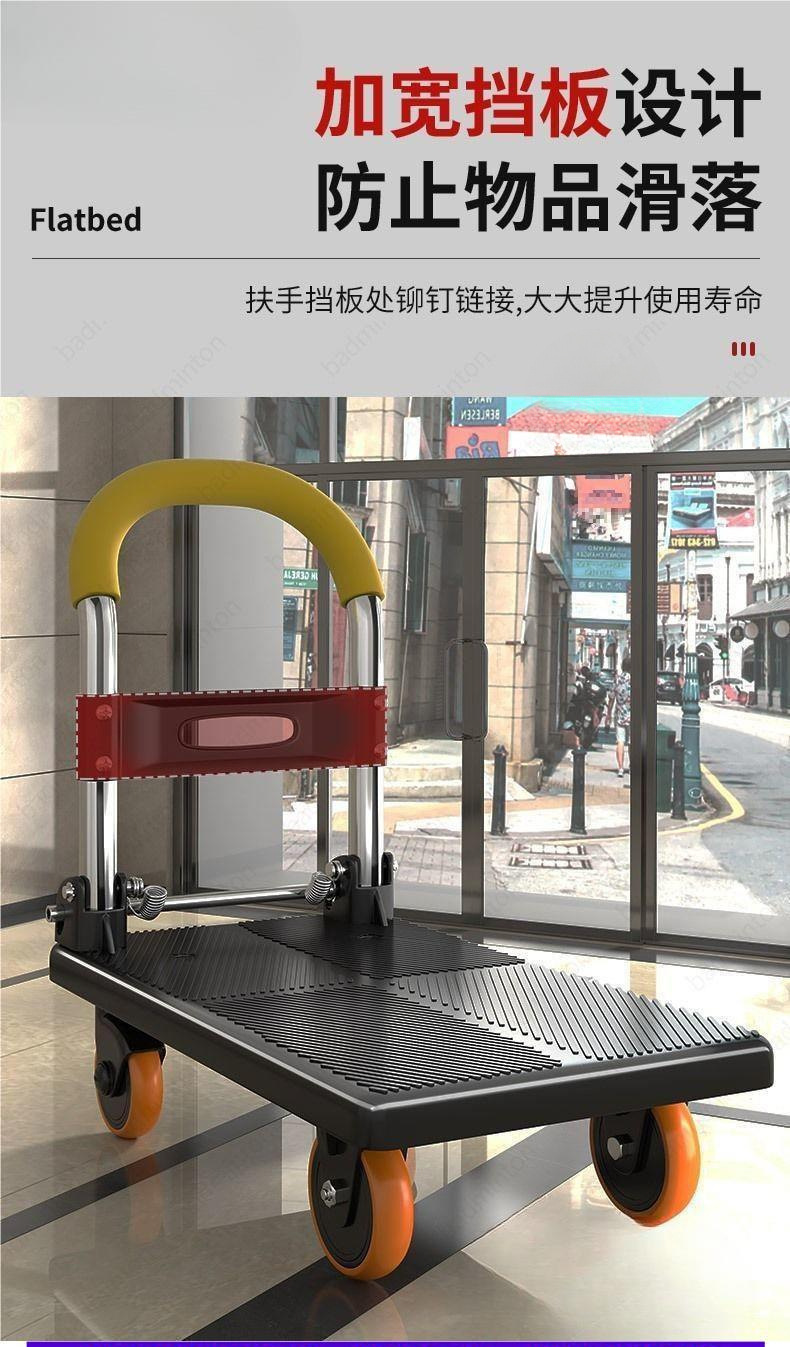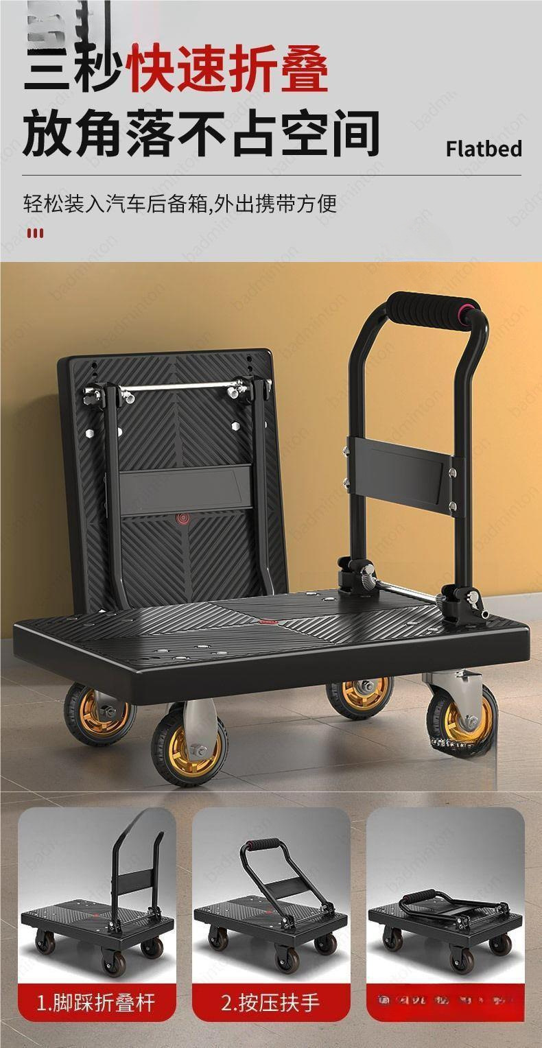 4 륜 트롤리 플랫 베드 트럭 트레일러 홈 음소거 접이식 푸시 카트 트럭 트럭스토어 가기