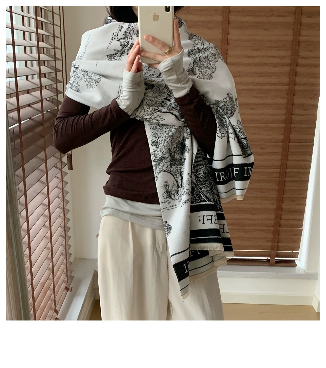 선물용으로 적합한 가벼운 럭셔리 고급 가을 겨울 두꺼운 신상 스카프, 패셔너블한 양면 자카드 숄, 따뜻한 모조 캐시미어 스카프스토어 가기