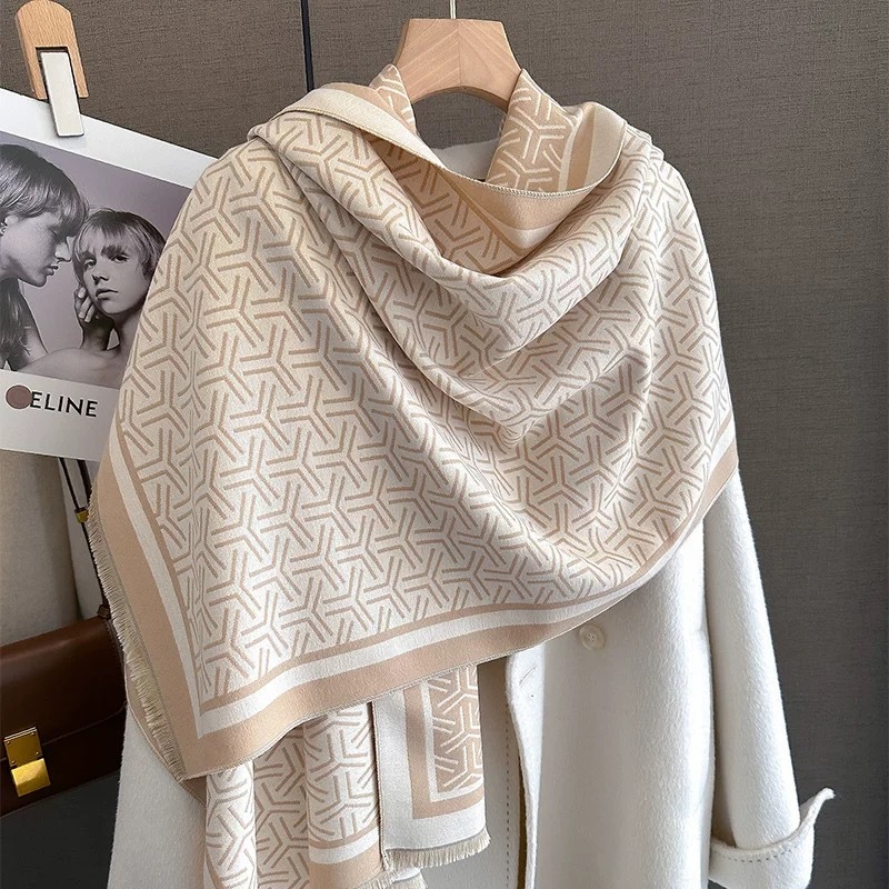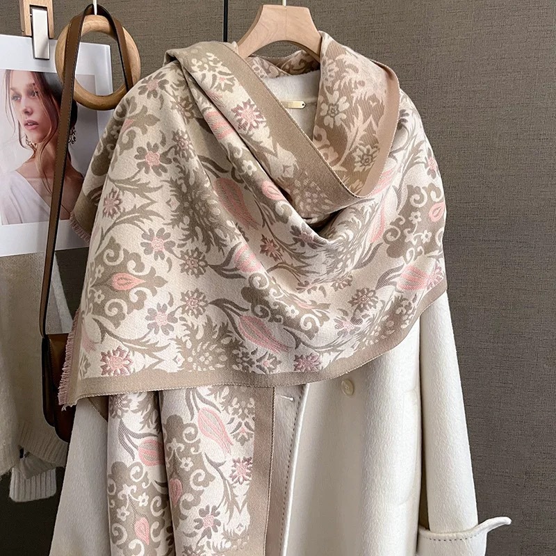 선물용으로 적합한 가벼운 럭셔리 고급 가을 겨울 두꺼운 신상 스카프, 패셔너블한 양면 자카드 숄, 따뜻한 모조 캐시미어 스카프