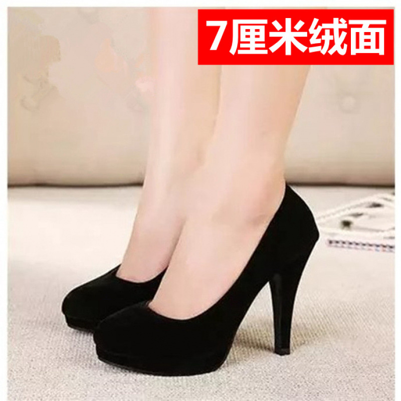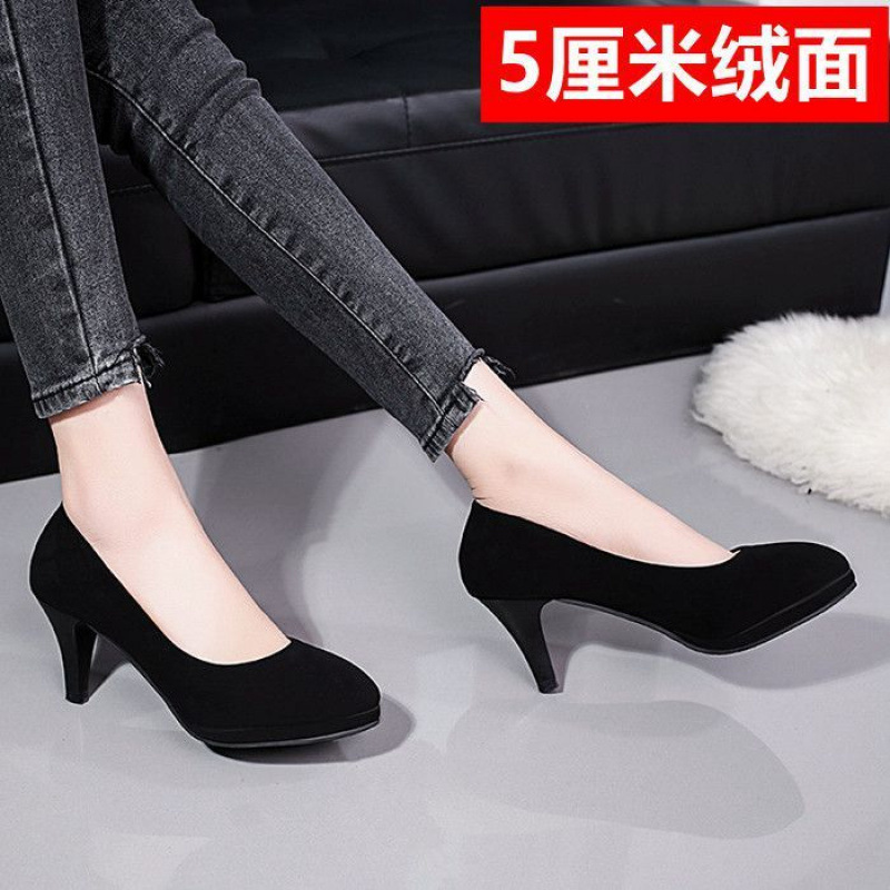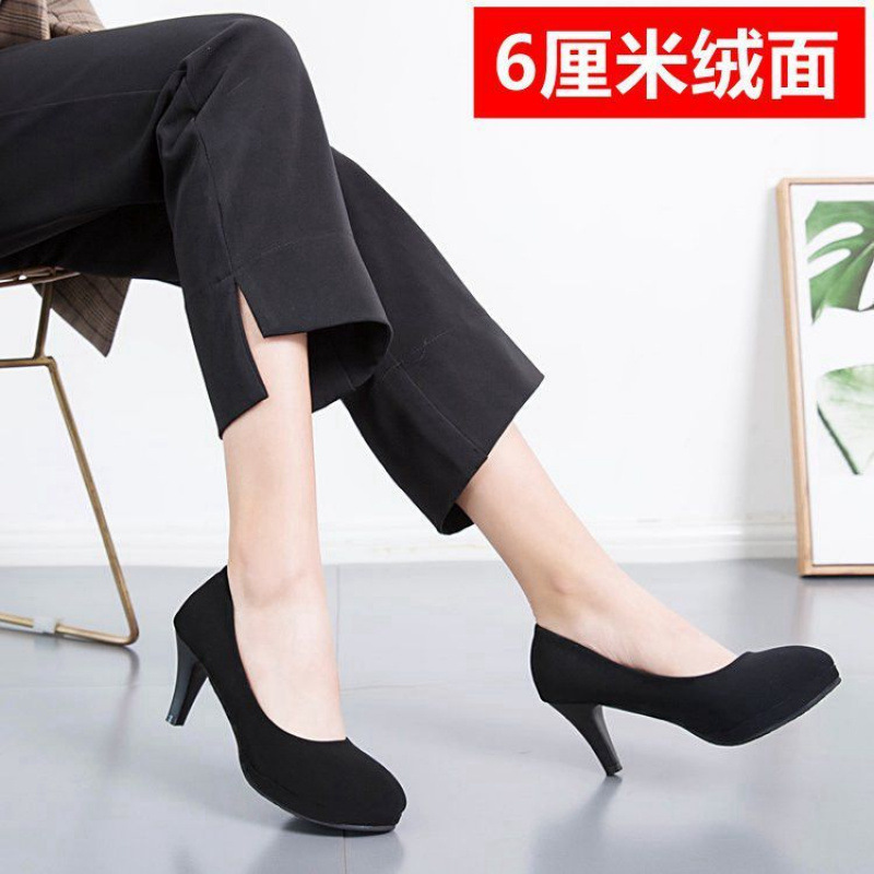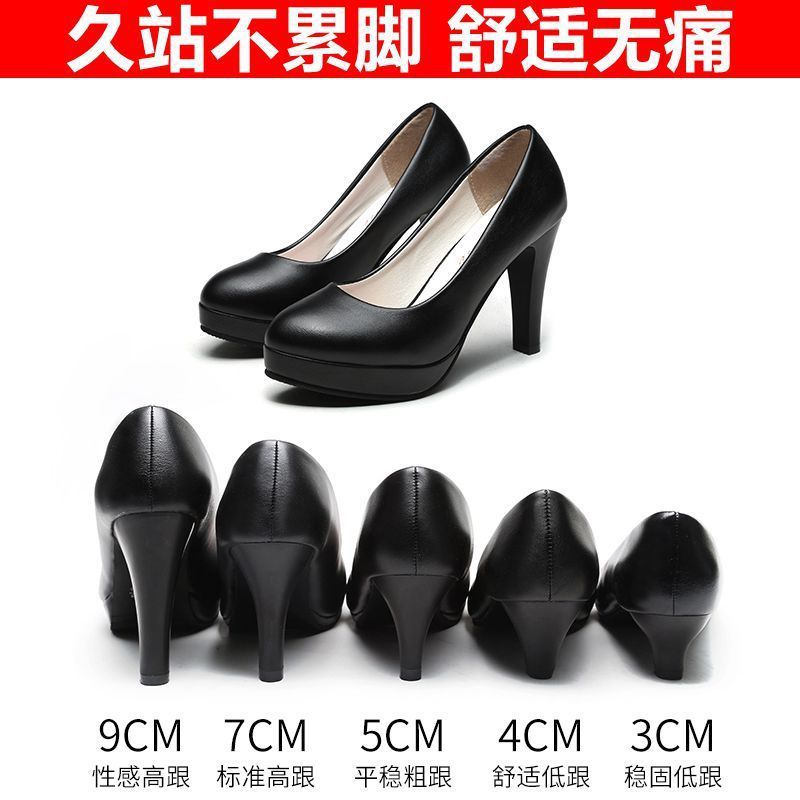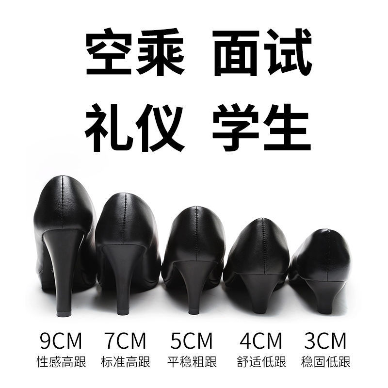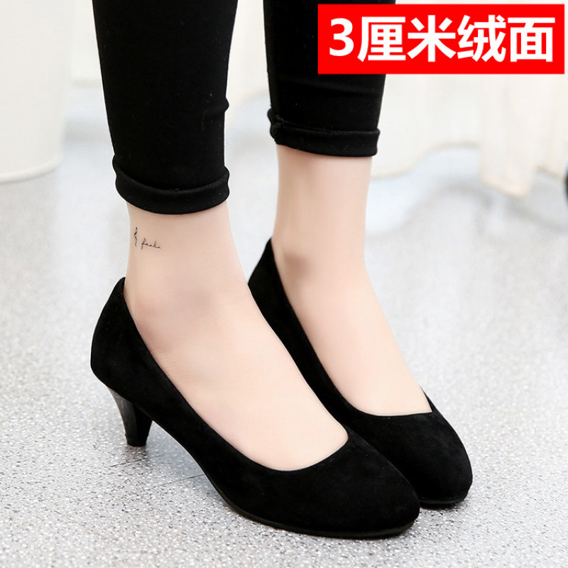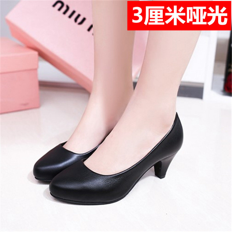 학생 인터뷰 전문 에티켓 하이힐 신발 여성용 둥근 발가락 얇은 굽 블랙 미들 승무원 원피스 굵은 굽 작업화스토어 가기