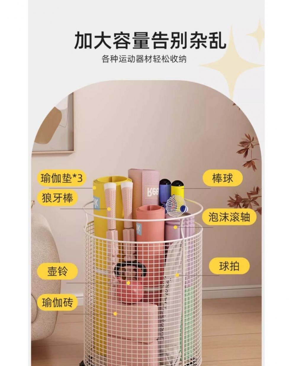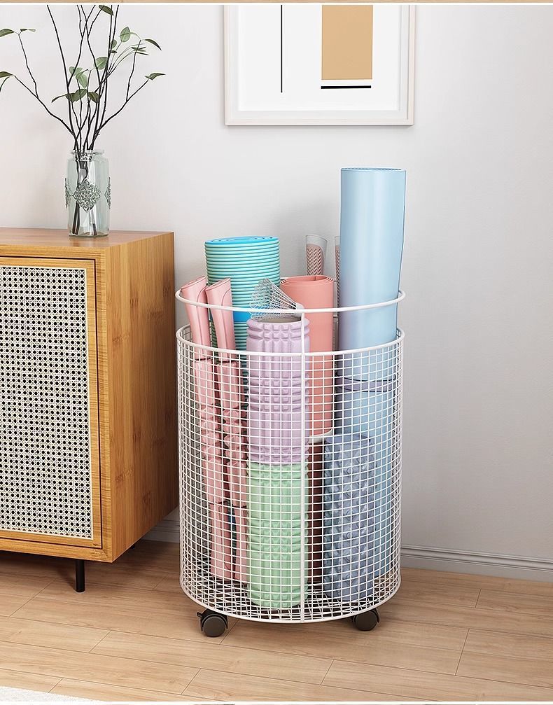 요가 매트 보관 바구니 스포츠 피트니스 장비 보관 튜브 깃털 보관 바구니 휠 가정용 보관 랙스토어 가기
