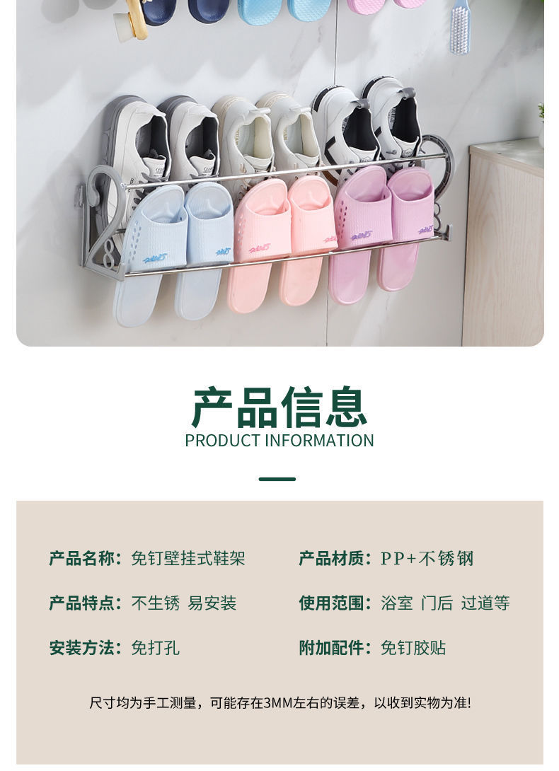 펀치없는 도어 후면 신발 랙 교수형 신발 보관 도어 신발 랙 간단한 욕실 슬리퍼 랙 못없는 벽 교수형