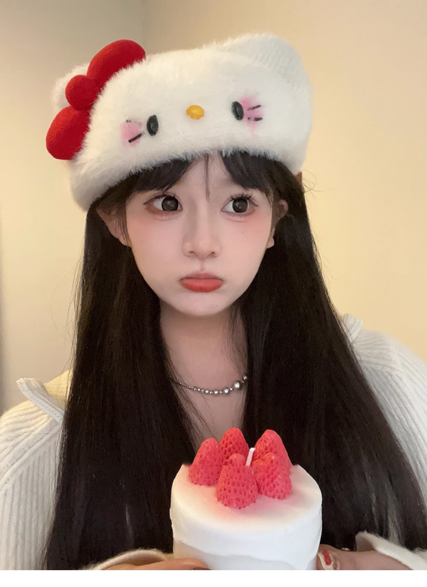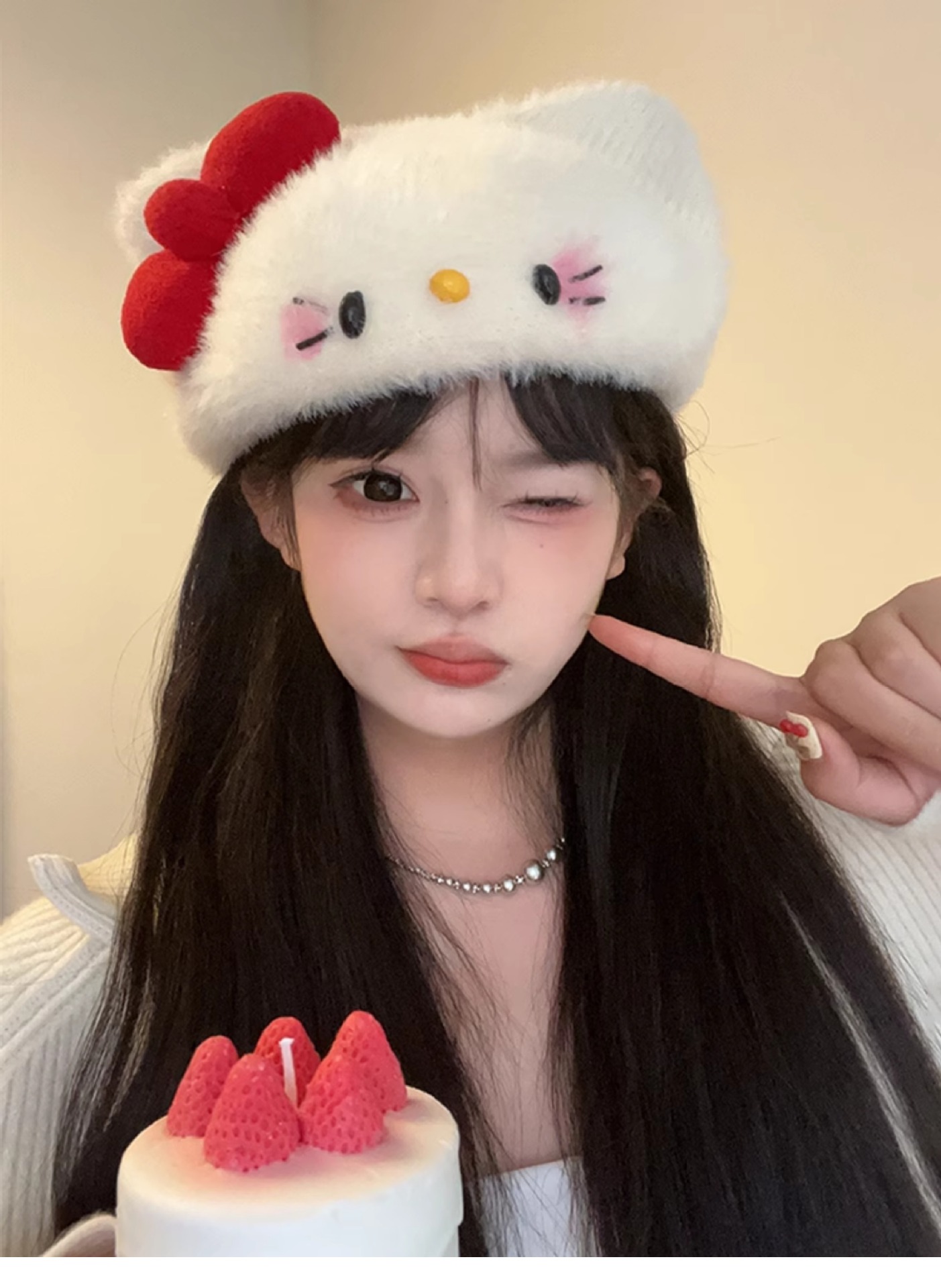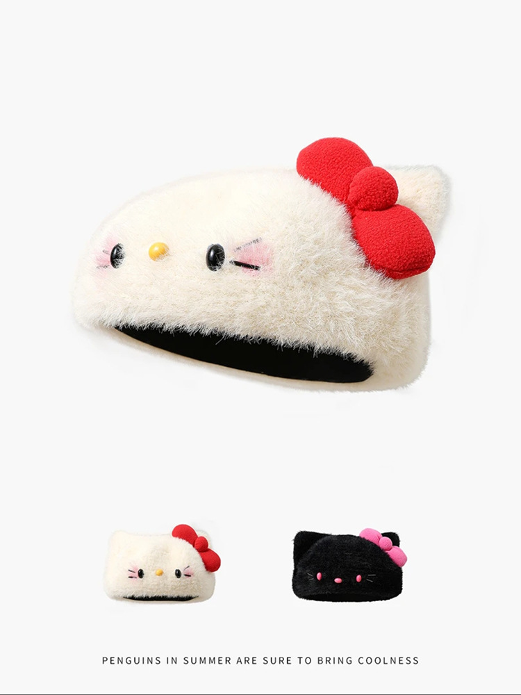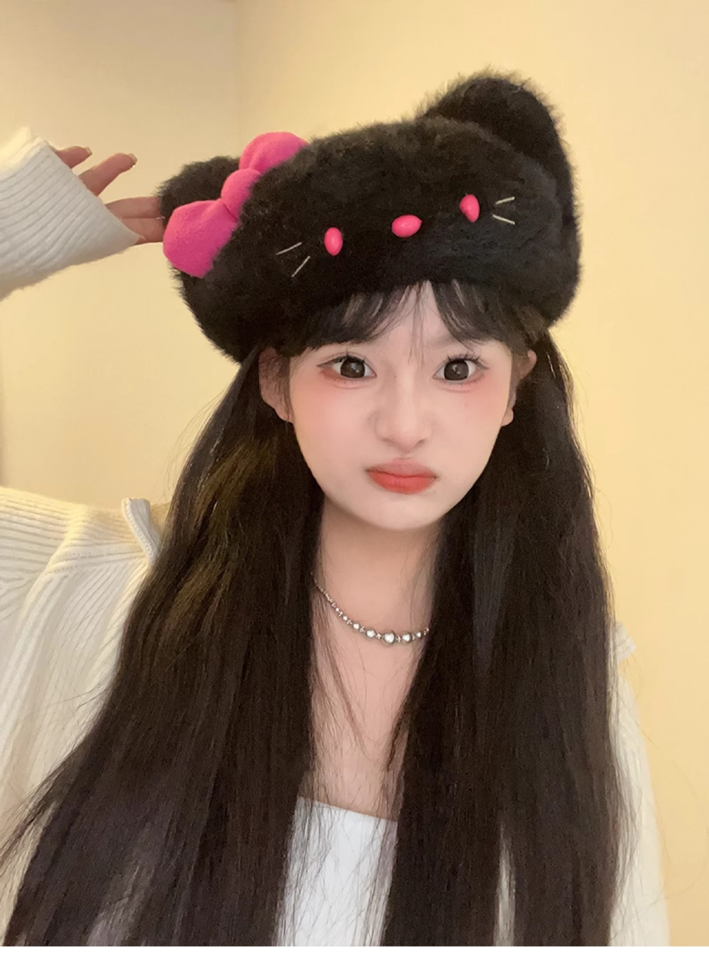 2024 가을과 겨울 귀여운 베레 여성용 귀여운 새끼 고양이 귀 모자 수제 니트 모피 따뜻한 화가 모자스토어 가기