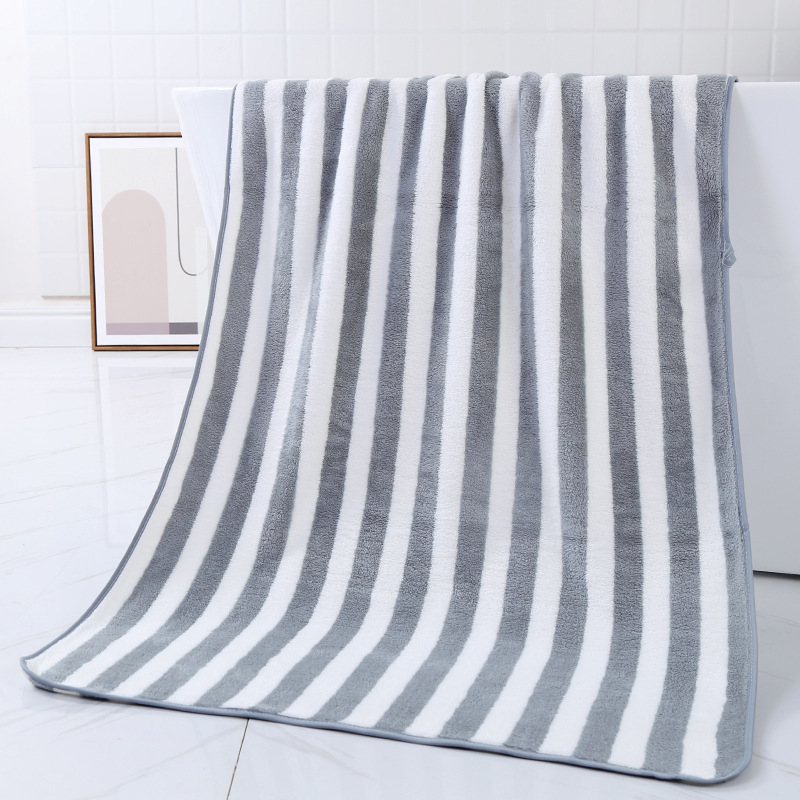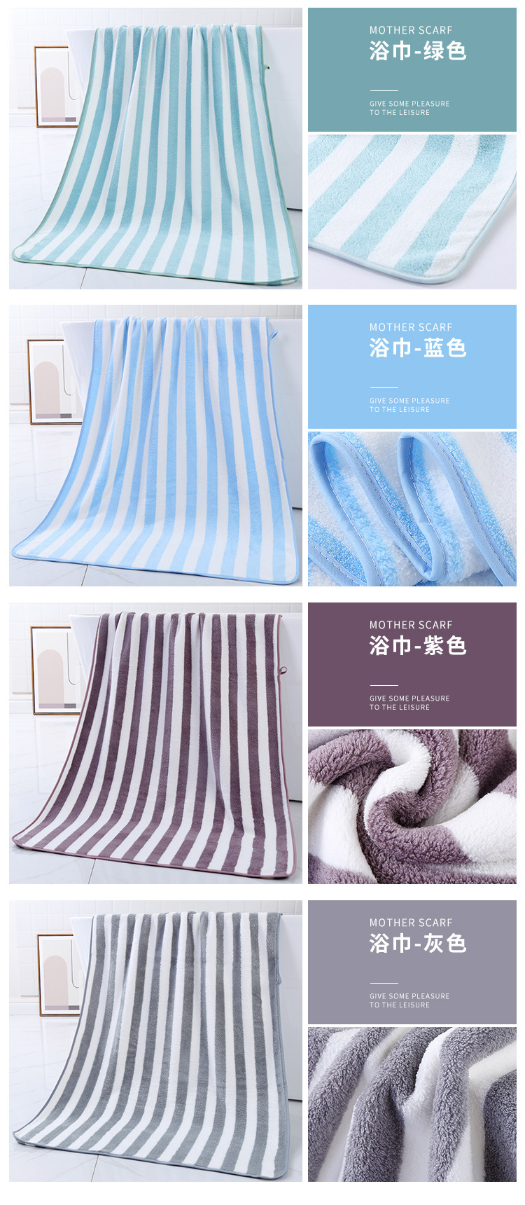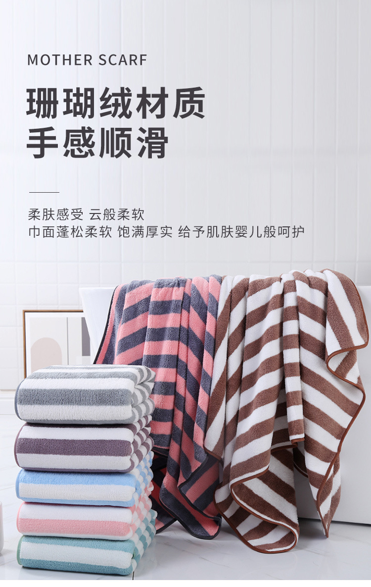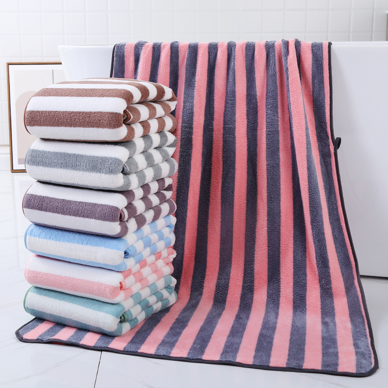 산호 양털 목욕 타월 줄무늬 부드러운 흡수 초대형 두꺼운 가정용 타월 도매 컬러 스트라이프 커플 목욕 랩스토어 가기