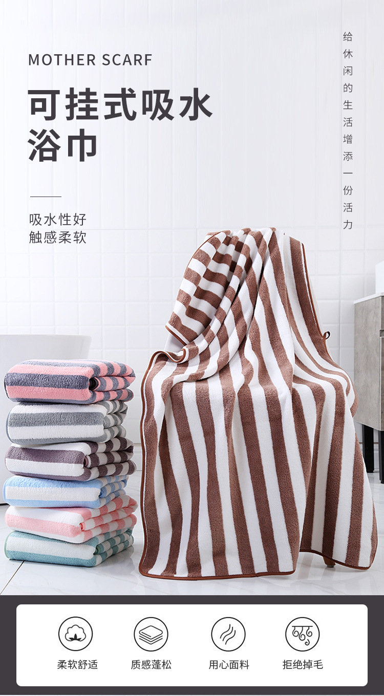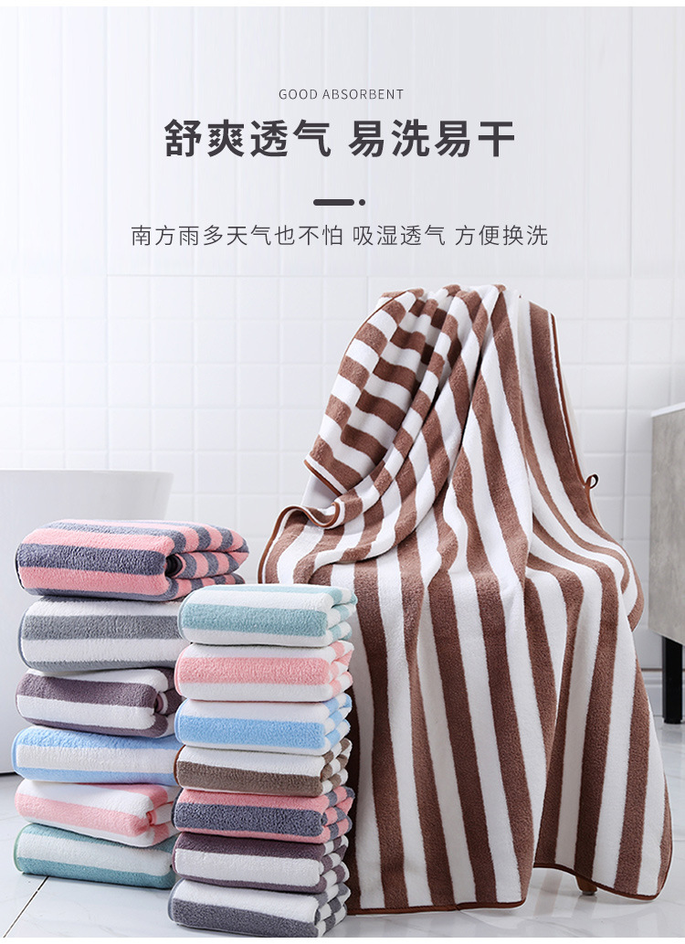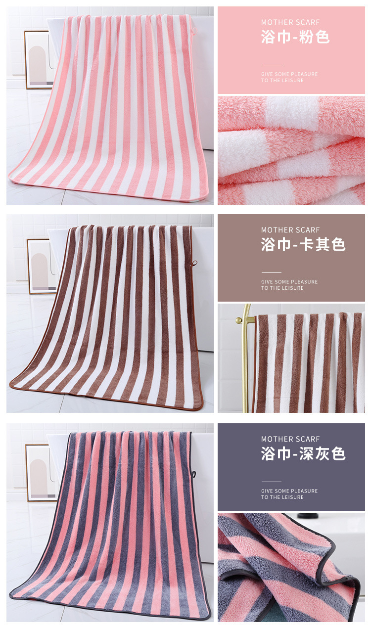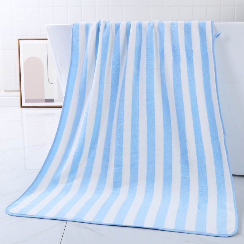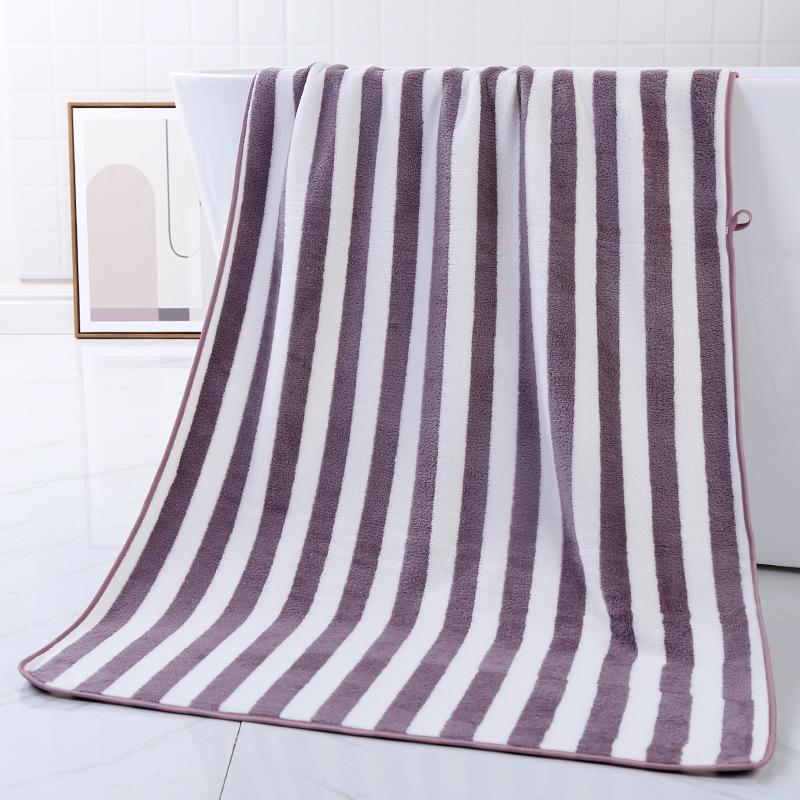산호 양털 목욕 타월 줄무늬 부드러운 흡수 초대형 두꺼운 가정용 타월 도매 컬러 스트라이프 커플 목욕 랩스토어 가기