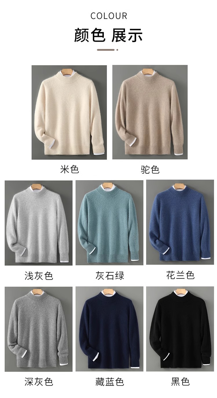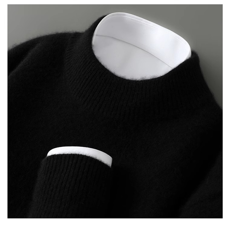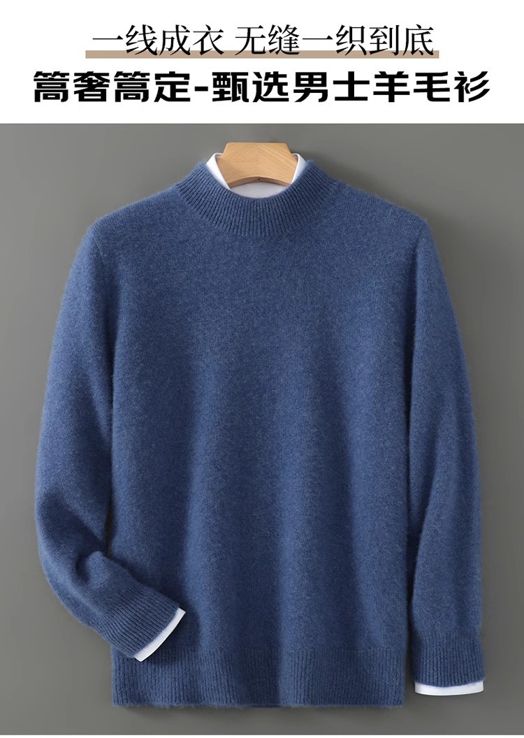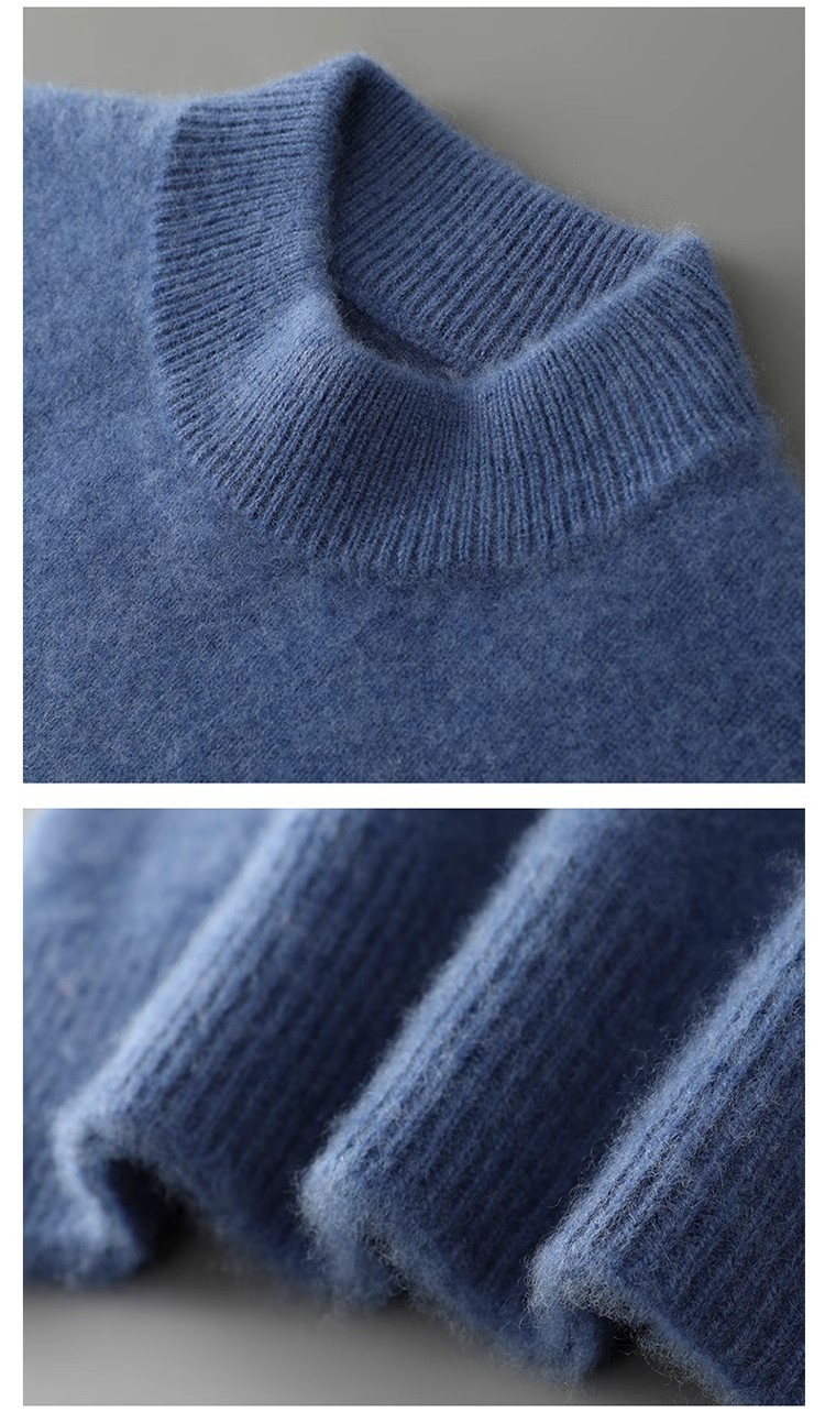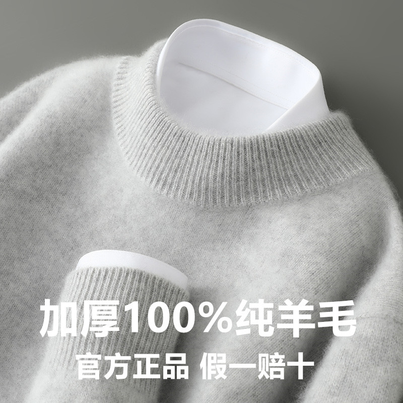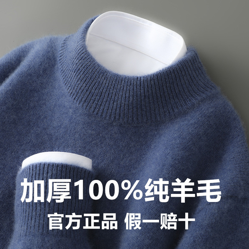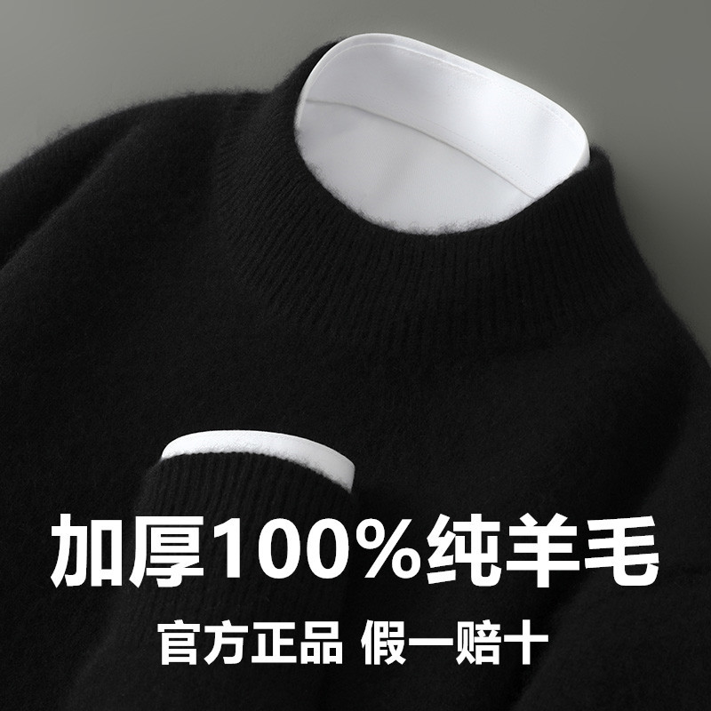 가을 겨울 남성용 두꺼운 100% 순수 울 스웨터, 하프 터틀넥, 부드럽고 왁시한 루즈 풀오버 니트 바닥 스웨터스토어 가기
