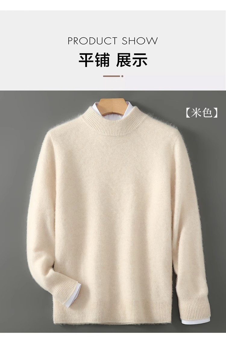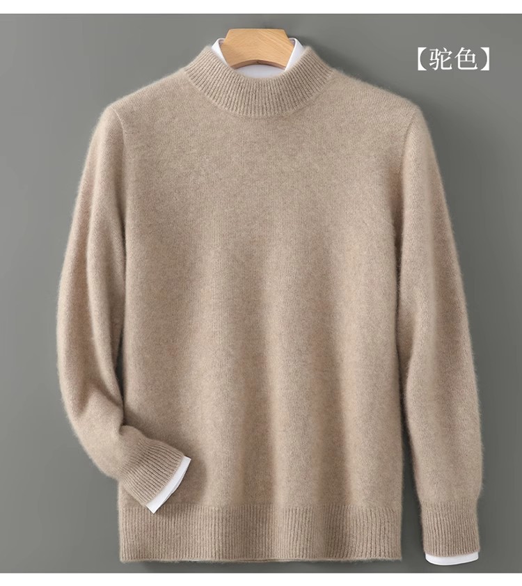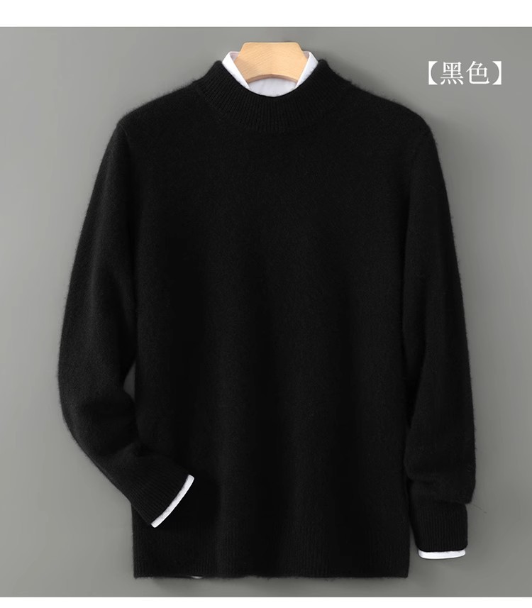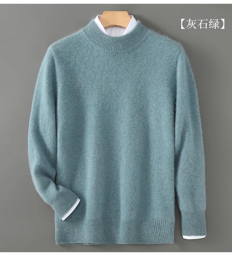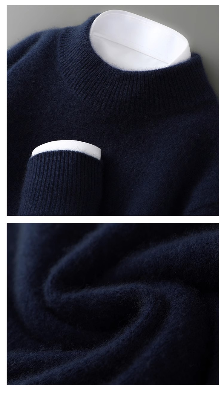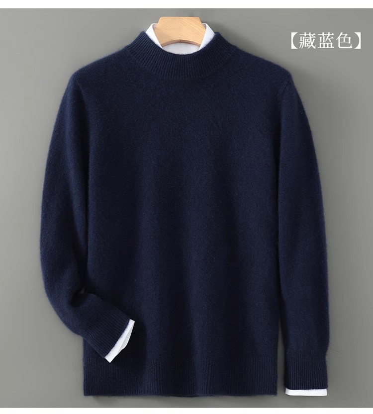 가을 겨울 남성용 두꺼운 100% 순수 울 스웨터, 하프 터틀넥, 부드럽고 왁시한 루즈 풀오버 니트 바닥 스웨터스토어 가기