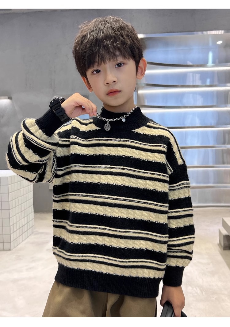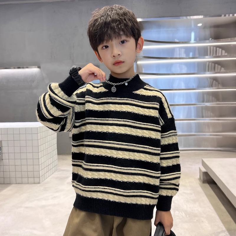 소년 스웨터 가을과 겨울 어린이 겨울베이스 니트 스웨터 2024 대형 어린이와 소년을위한 새로운 유행 스웨터스토어 가기