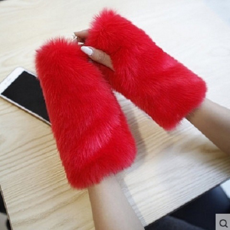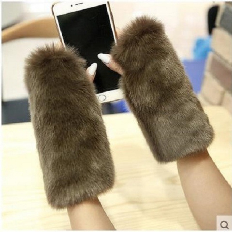핑거 커프 한국 스타일 따뜻한 가을과 겨울 귀여운 모조 헤어 여성 야외 하프 핑거 노출 토끼 헤어 장갑