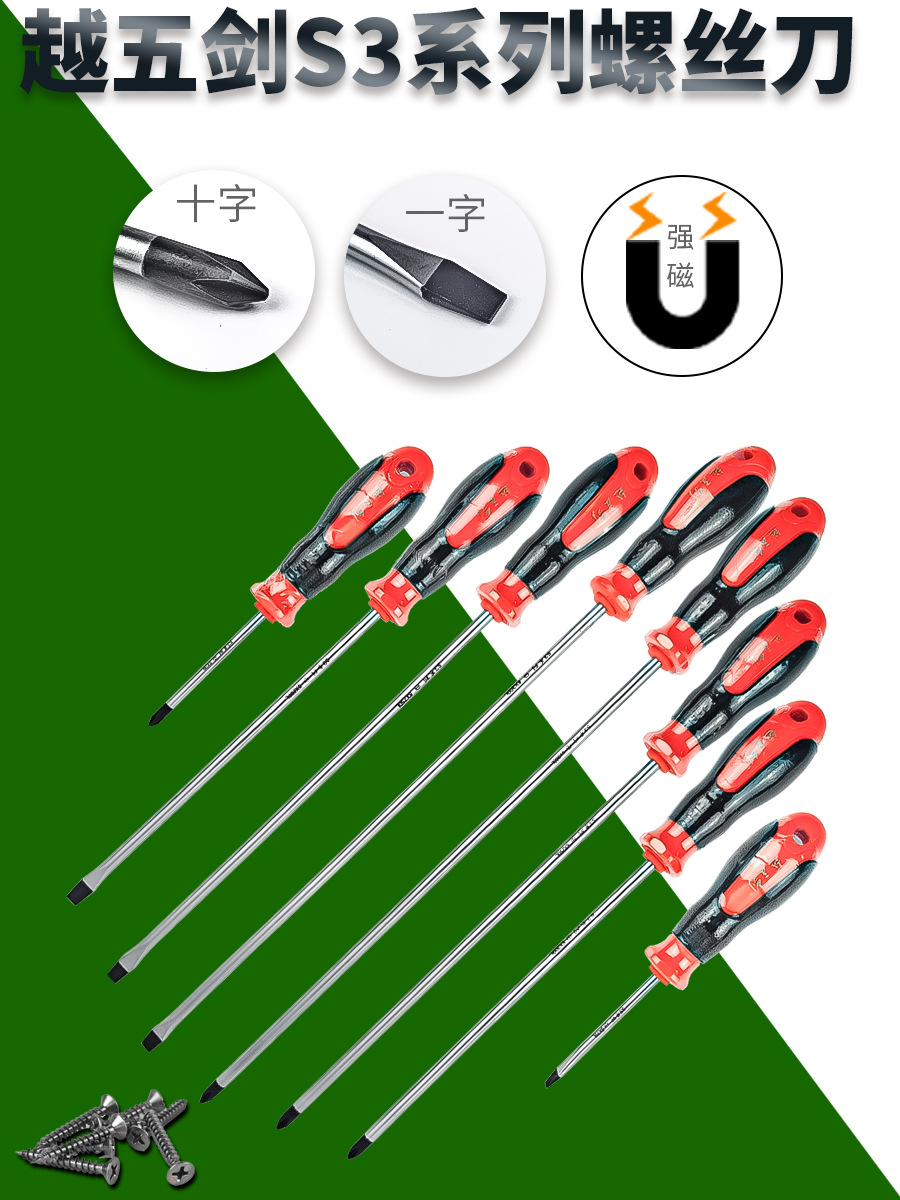 Yue Wu Jian 슈퍼 하드 수동 스크루 드라이버 배치 헤드 크로스 워드 강한 자기 양조 스몰 사이즈 고무 핸들 드라이버