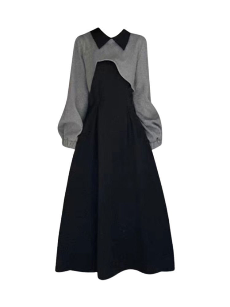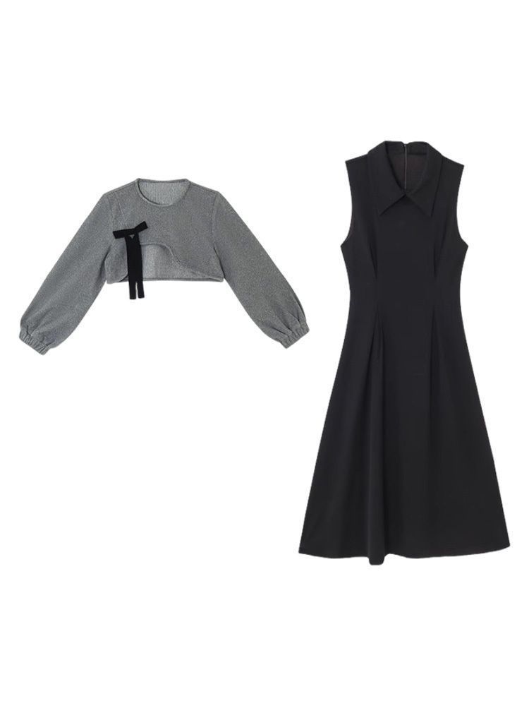 • 그레이 스웨트셔츠 블라우스 + 블랙 드레스 [슈트] 오리지널 고급