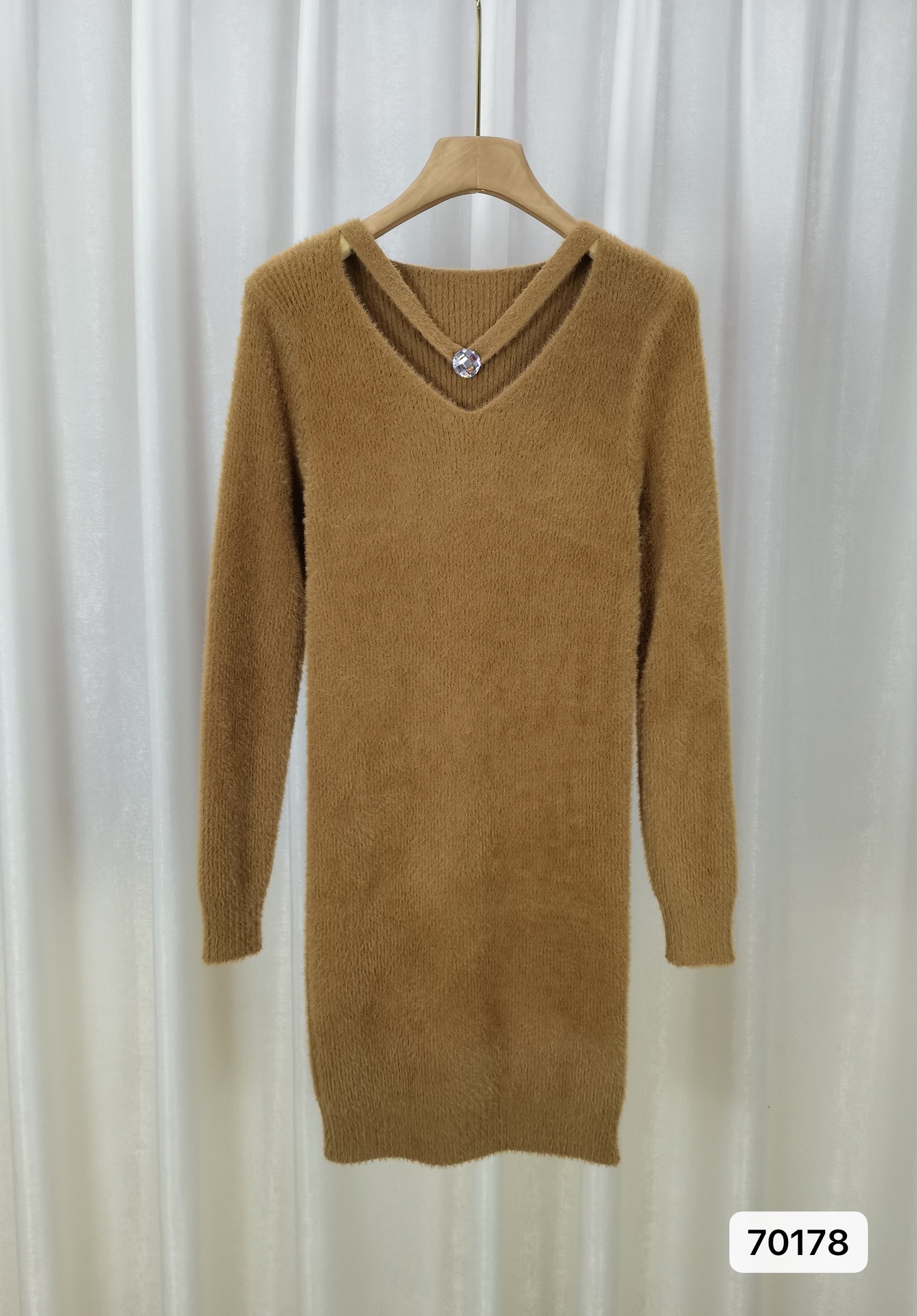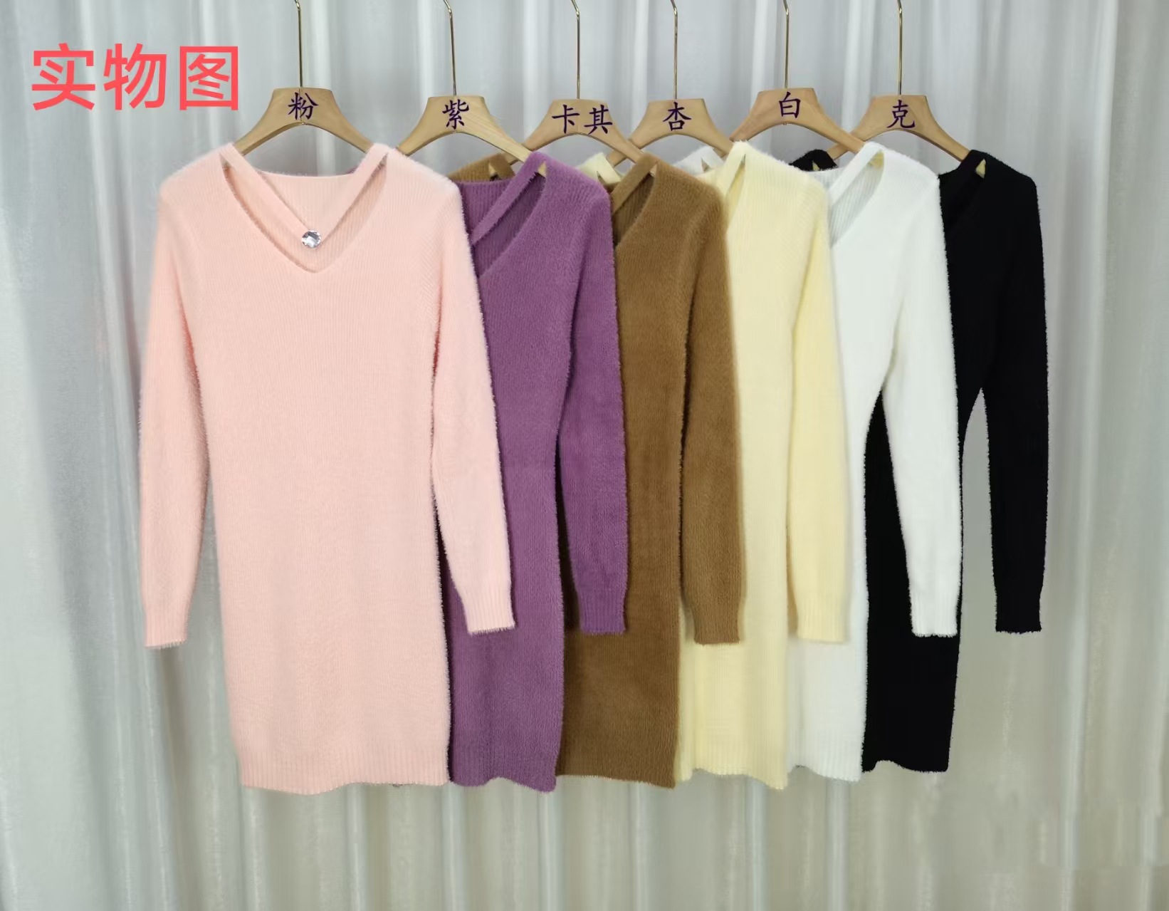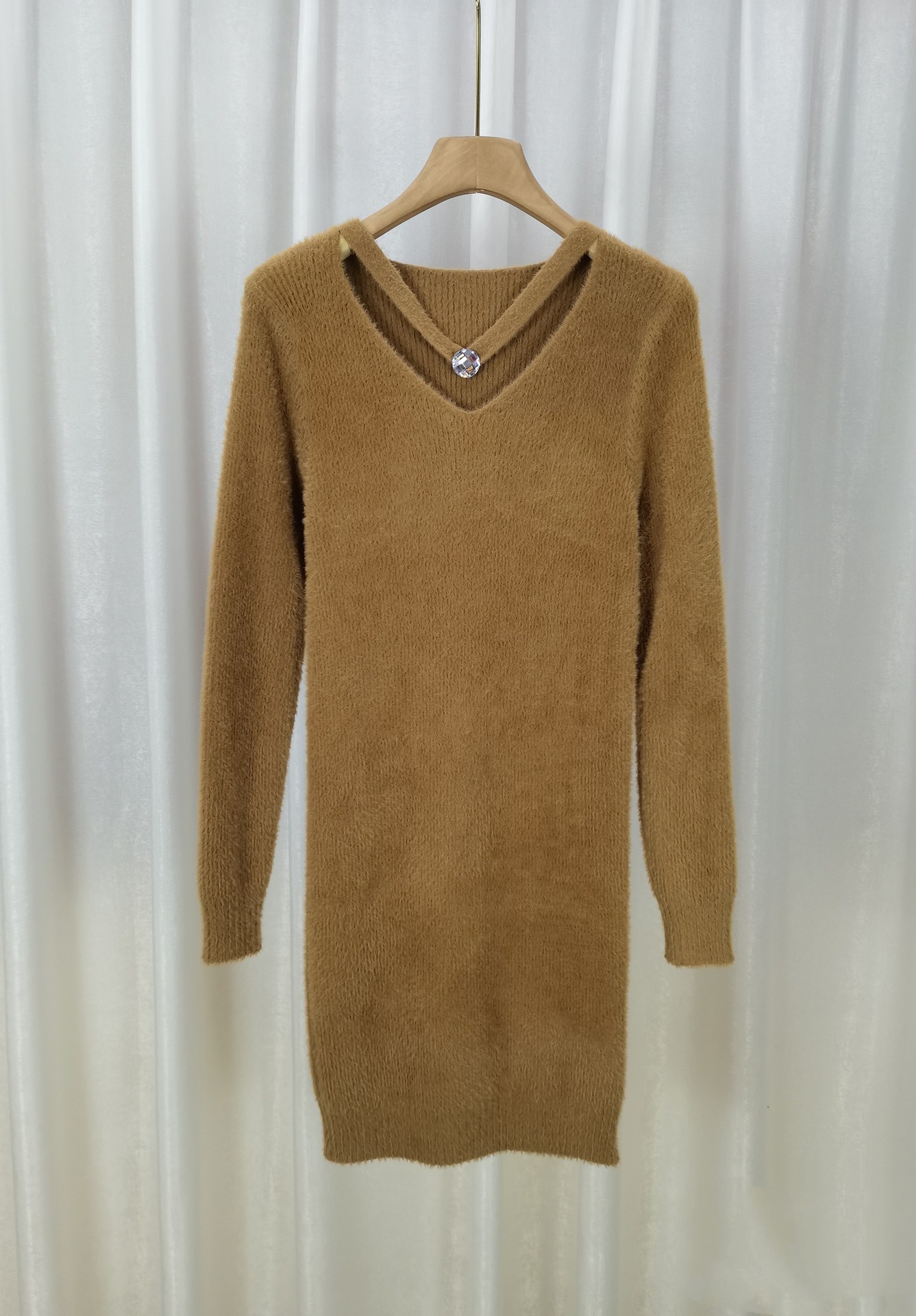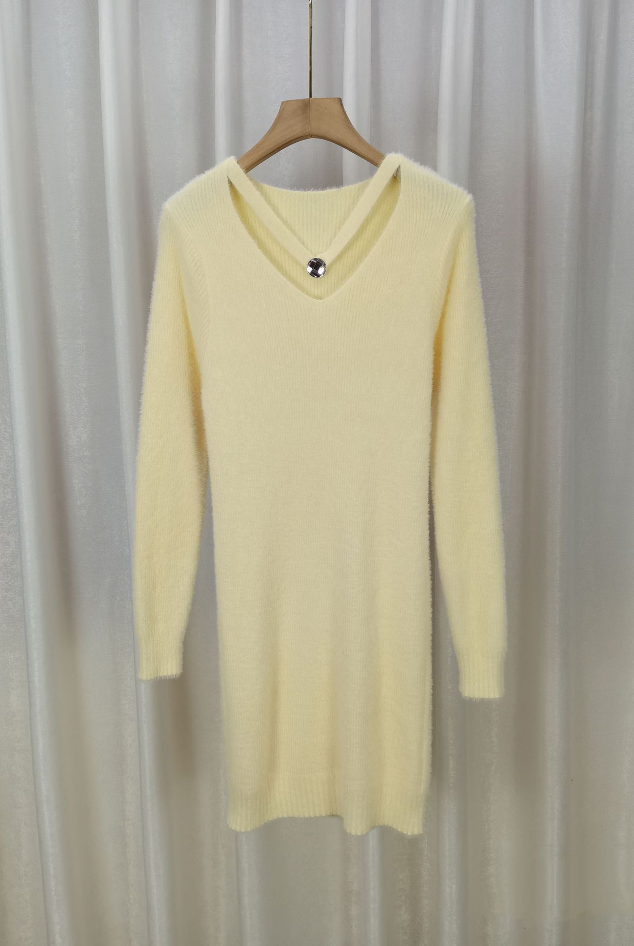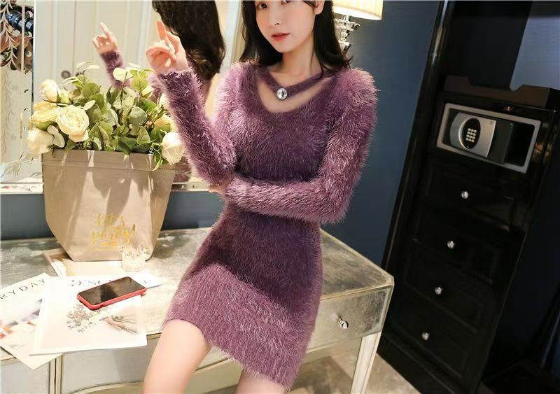가을과 겨울 한국 스타일 원피스 편안한 달콤한 나이 감소 V-Neck 스타일리제 밍크 벨벳 슬림베이스 스웨터 니트