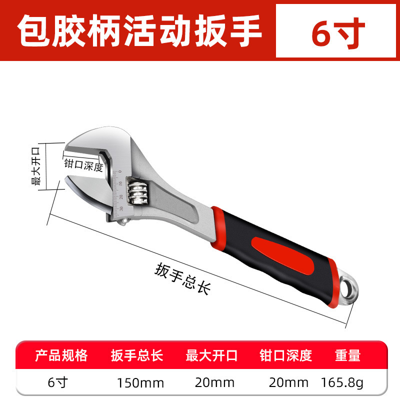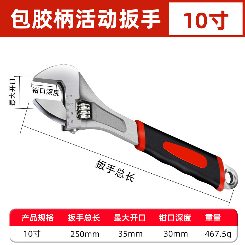 고무 코팅 조정 가능한 렌치 자동 수리 자동차 기계 수리 욕실 플라스틱 핸들 조절 렌치 렌치 하드웨어 도구