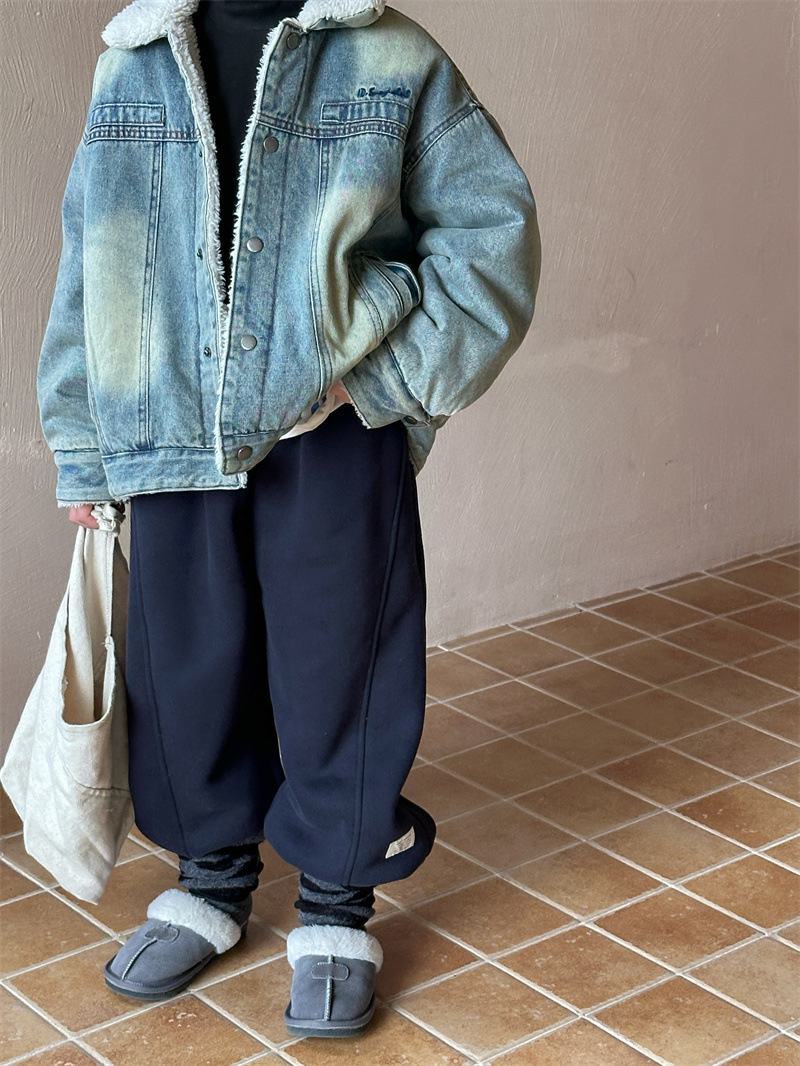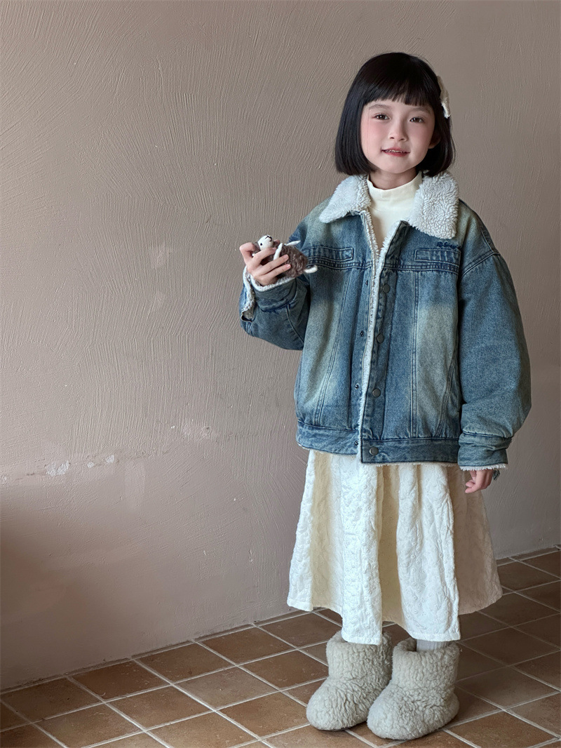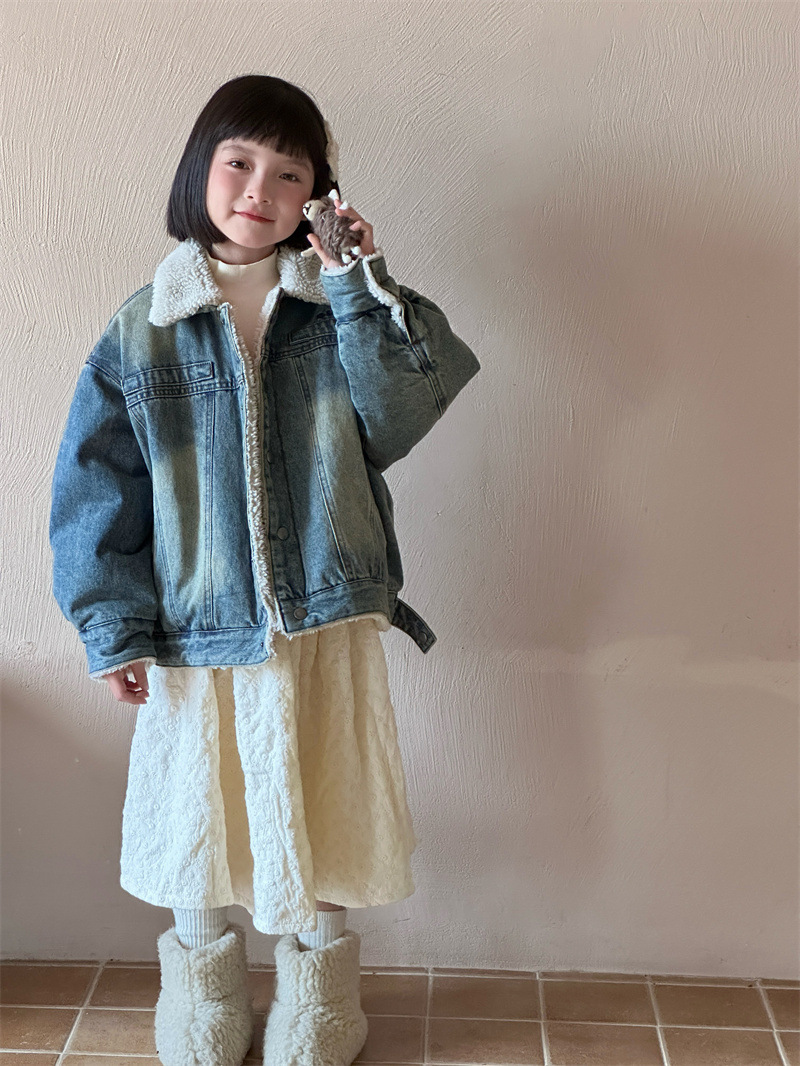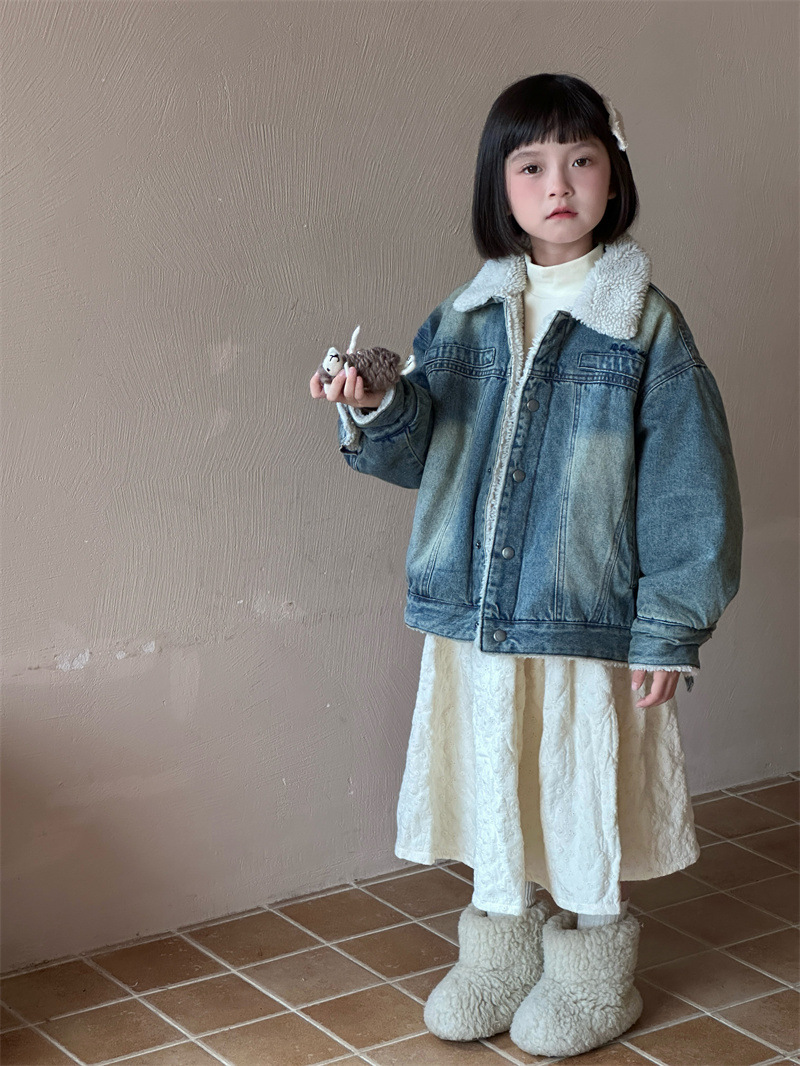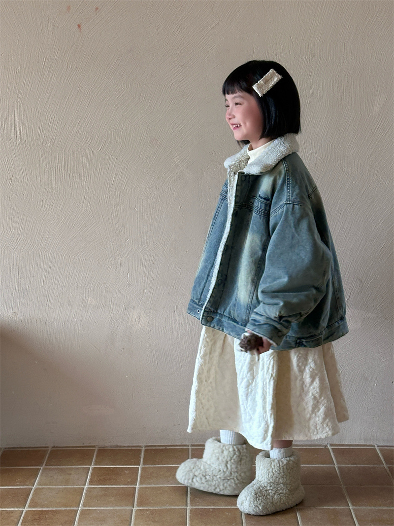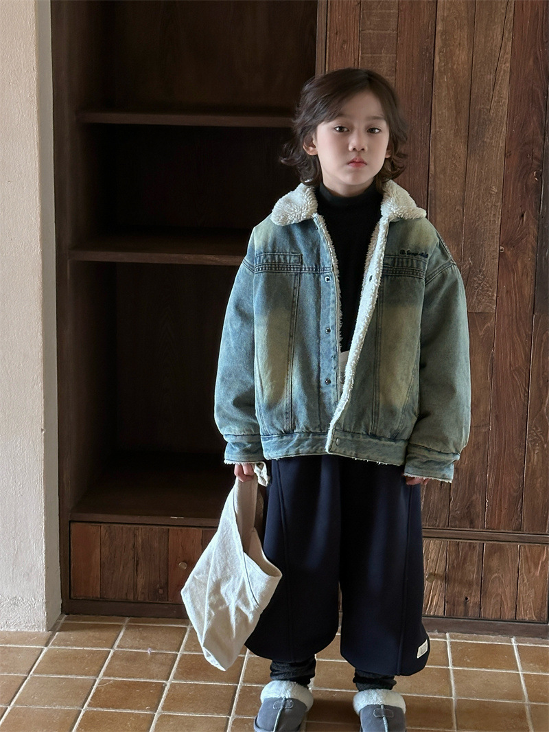 Chipmunk 2024 겨울 어린이 양고기 양모 데님 코트 소년 소녀 옷깃 올매치 느슨한 두꺼운 재킷