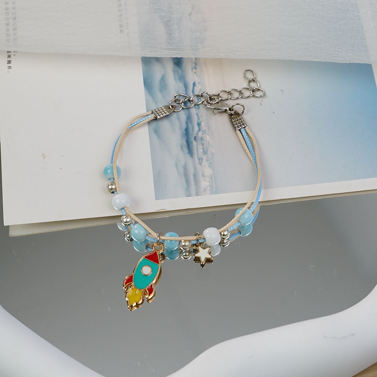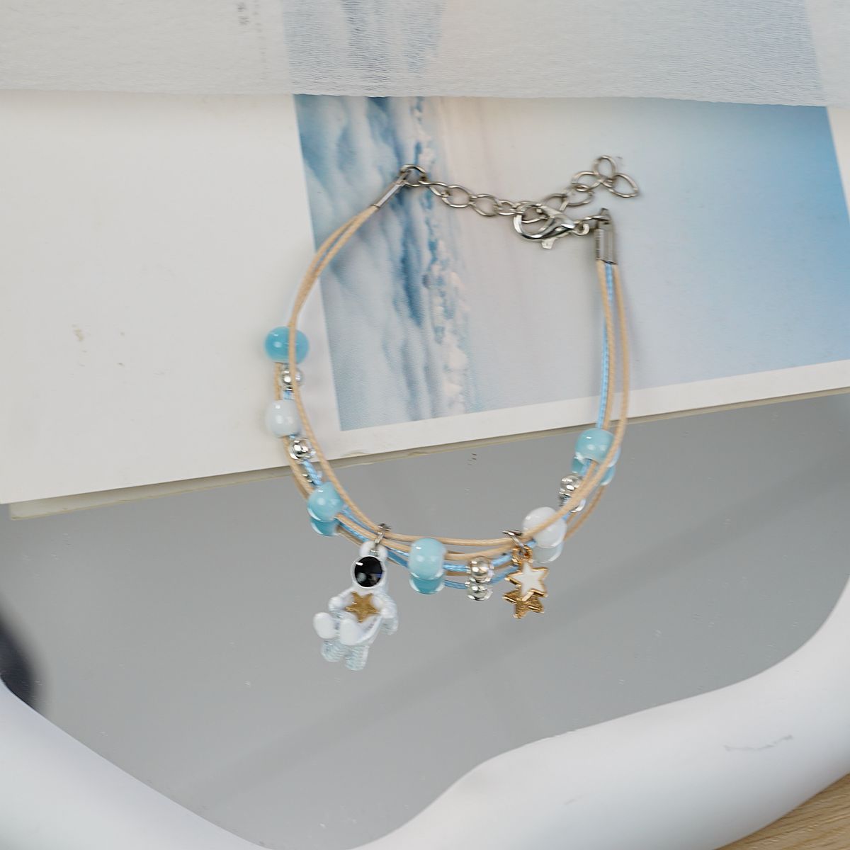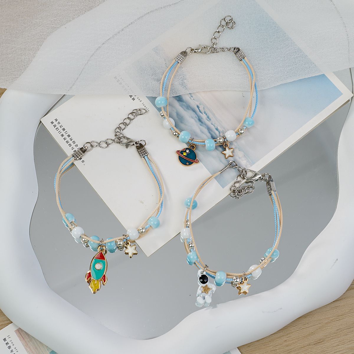 한국 스타일 소녀 달콤한 우주 비행사 팔찌 여성의 간단한 공간 블루 맞춤형 팔찌 여성의 여자 친구 선물 보석스토어 가기