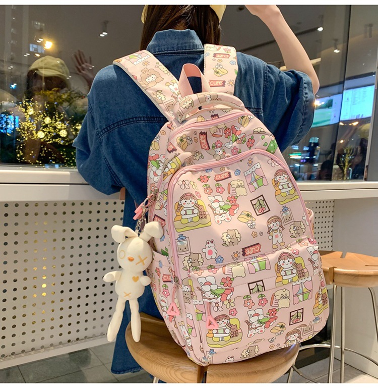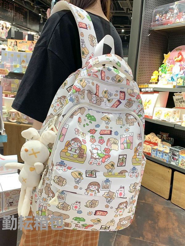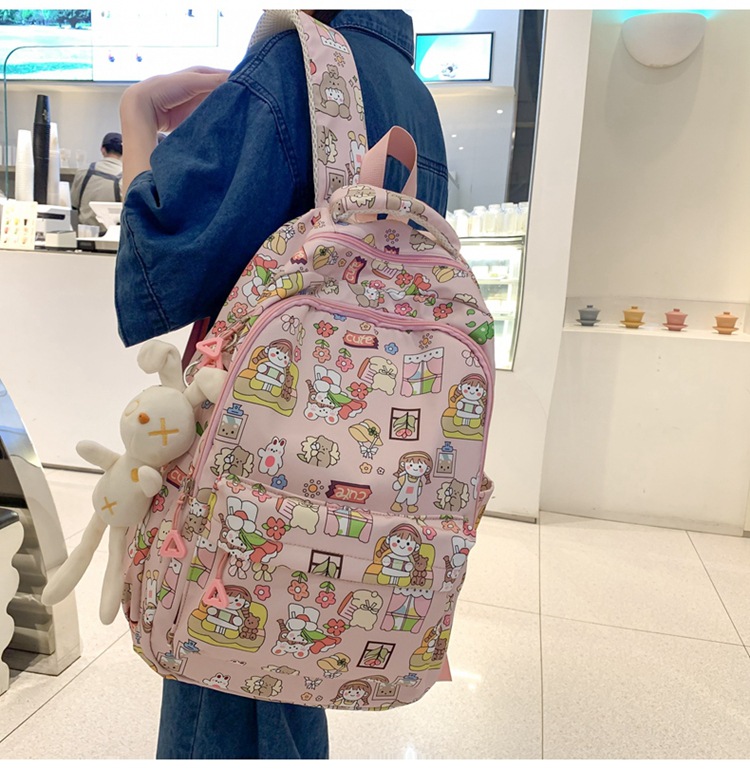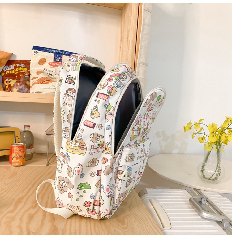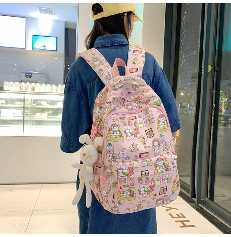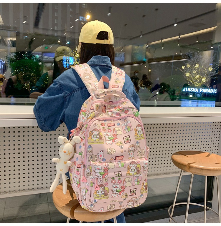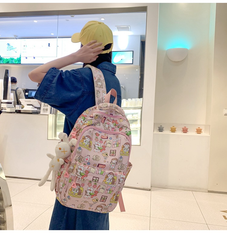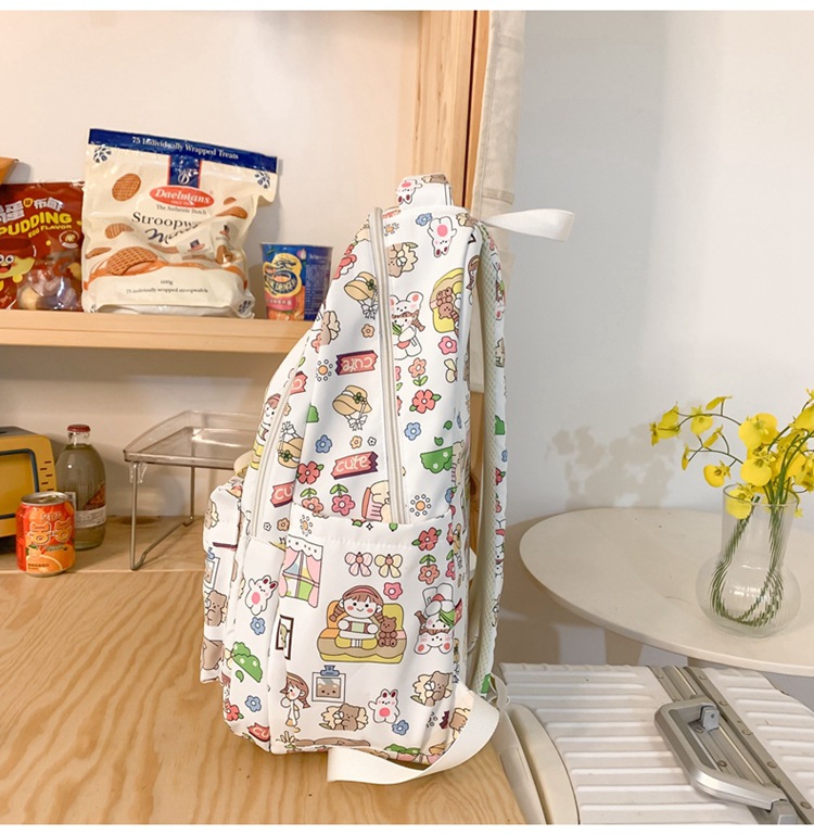 Schoolbag 여성의 2023 새로운 도착 고등학교 대학생 배낭 인쇄 학생 캐주얼 경량 여행 귀여운 배낭스토어 가기