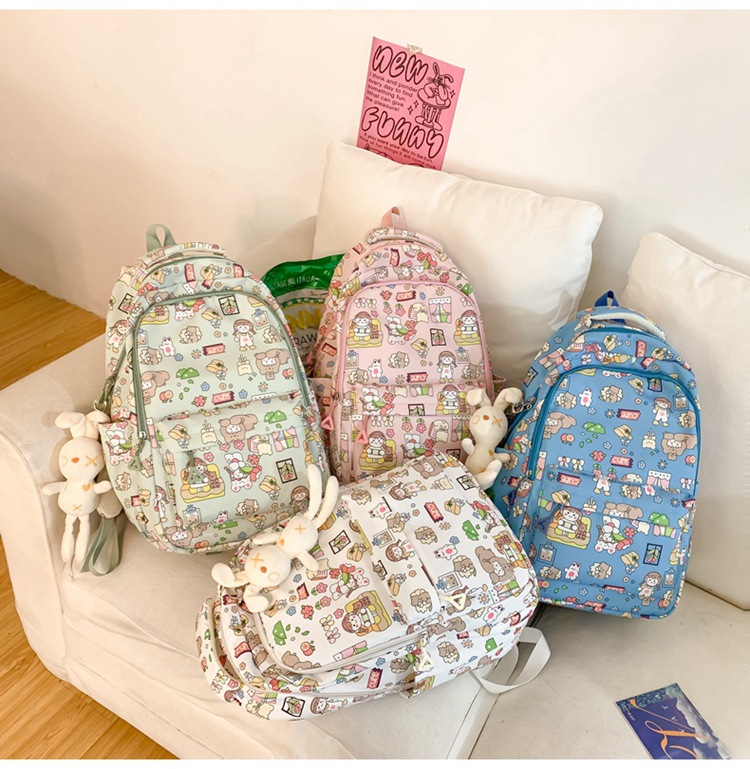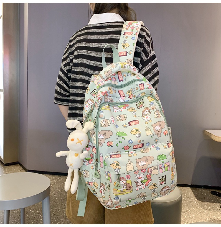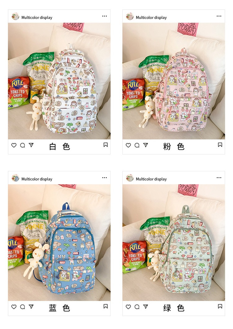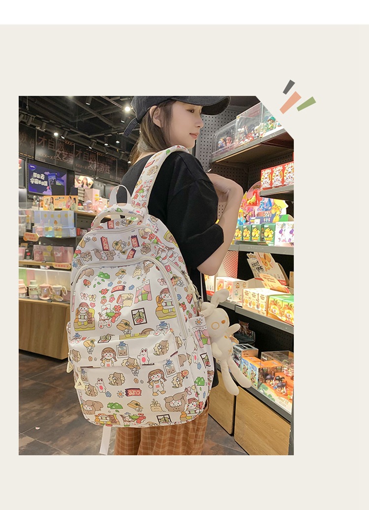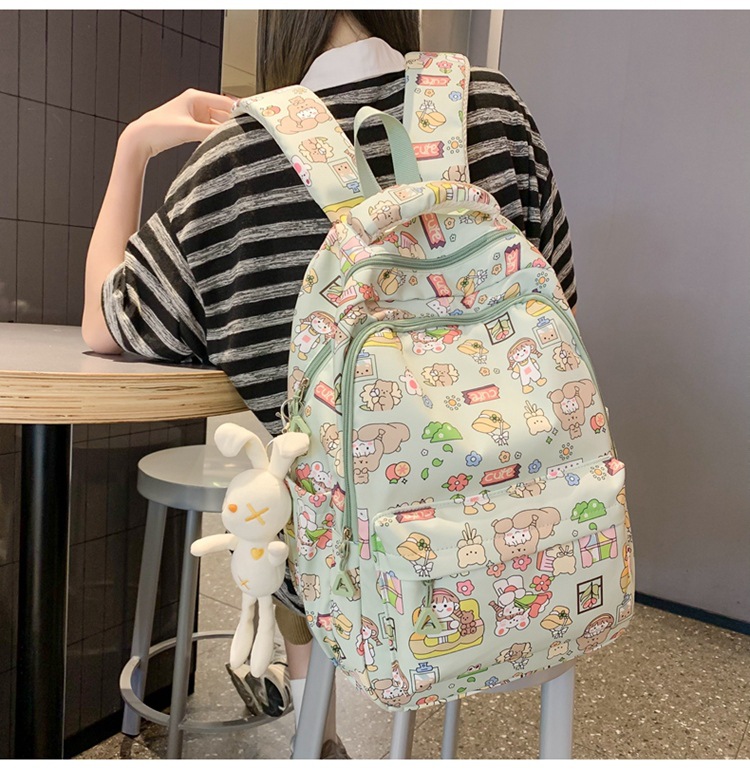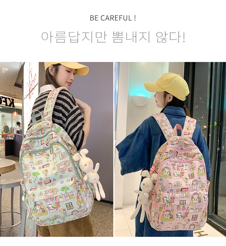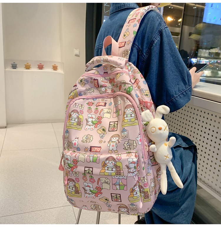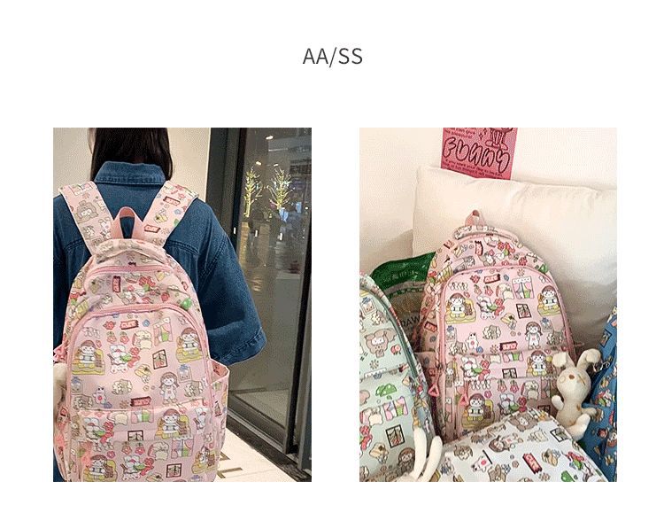 Schoolbag 여성의 2023 새로운 도착 고등학교 대학생 배낭 인쇄 학생 캐주얼 경량 여행 귀여운 배낭스토어 가기