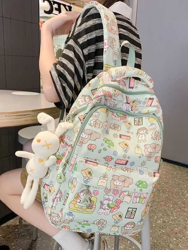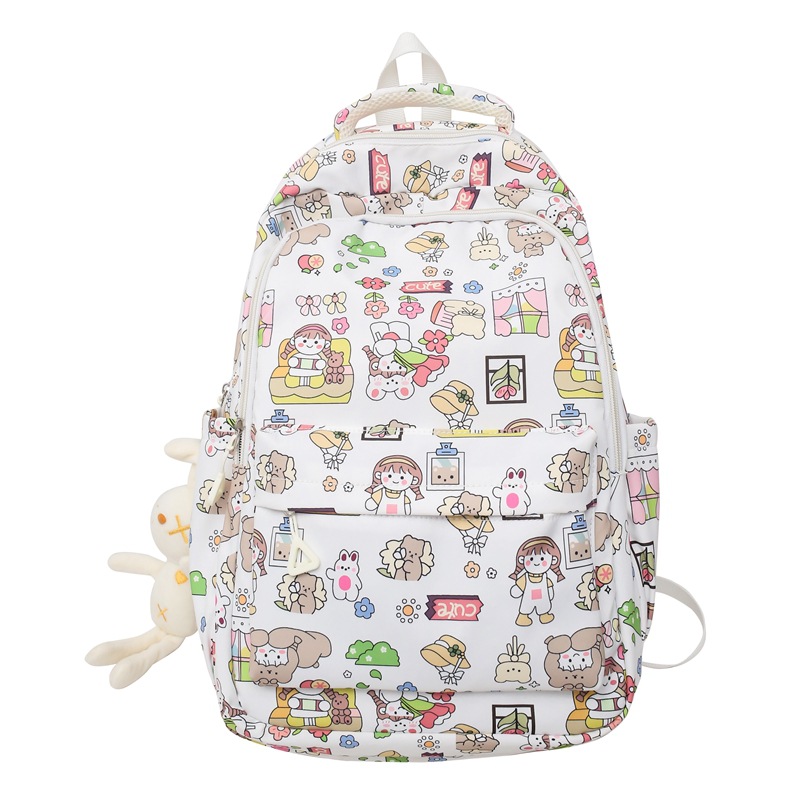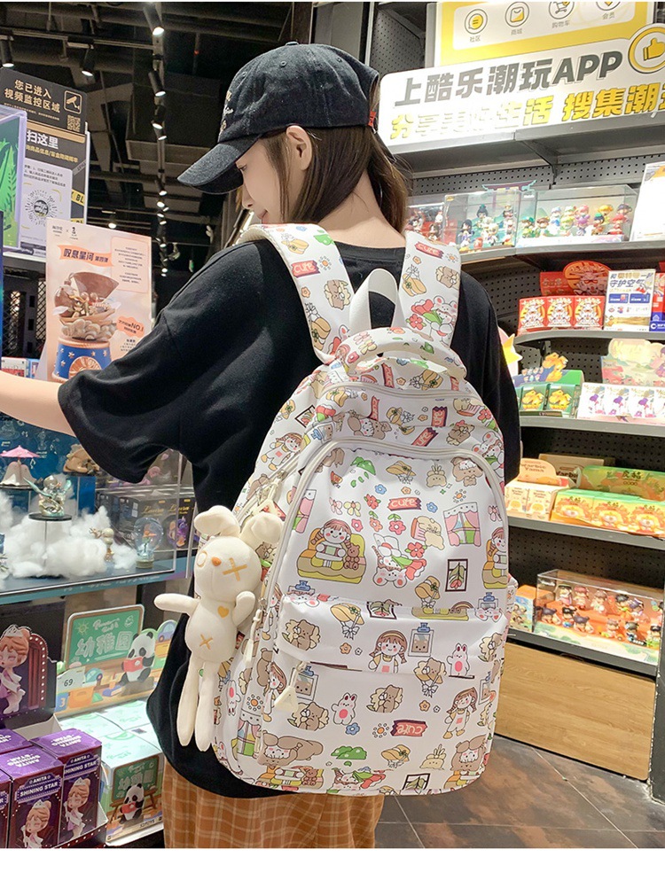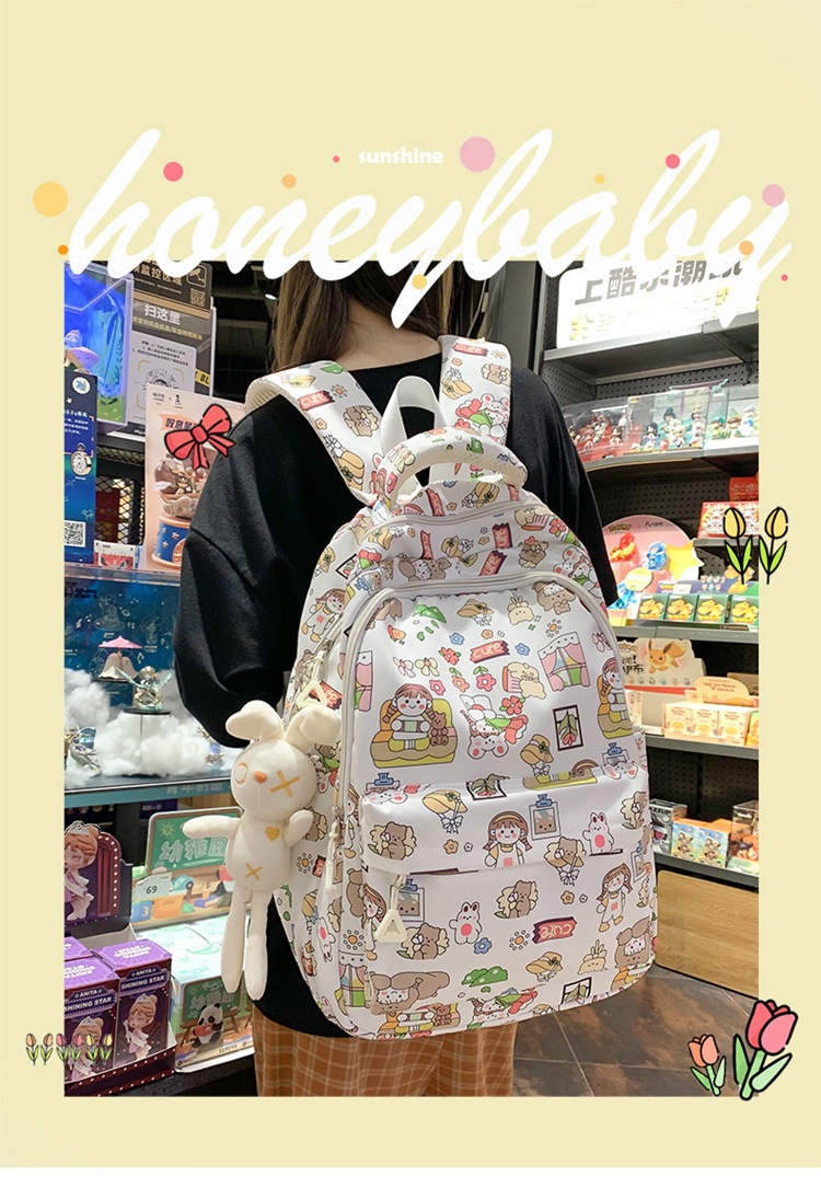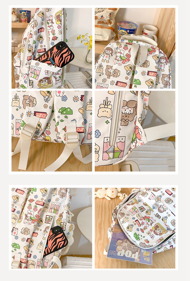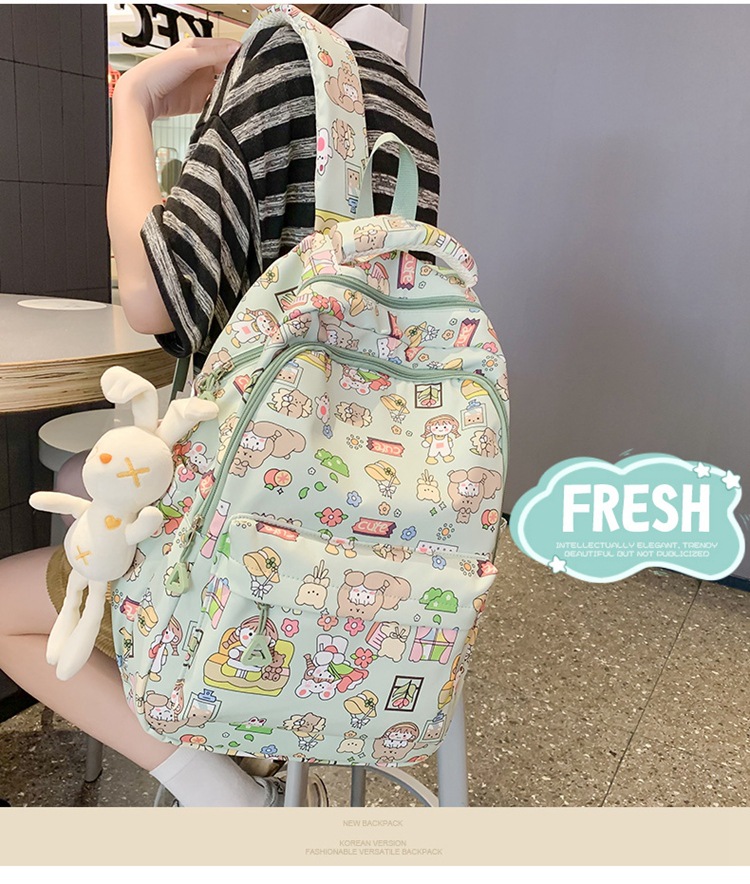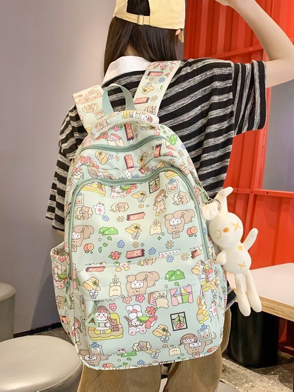 Schoolbag 여성의 2023 새로운 도착 고등학교 대학생 배낭 인쇄 학생 캐주얼 경량 여행 귀여운 배낭스토어 가기