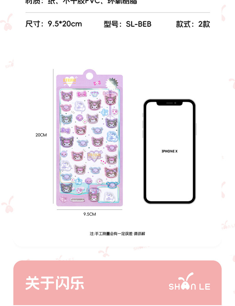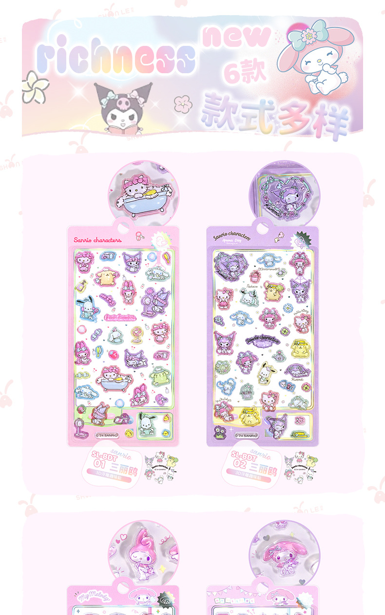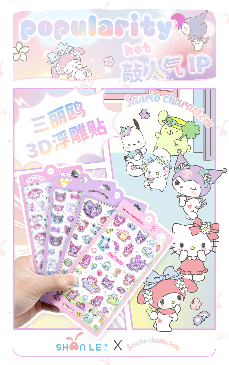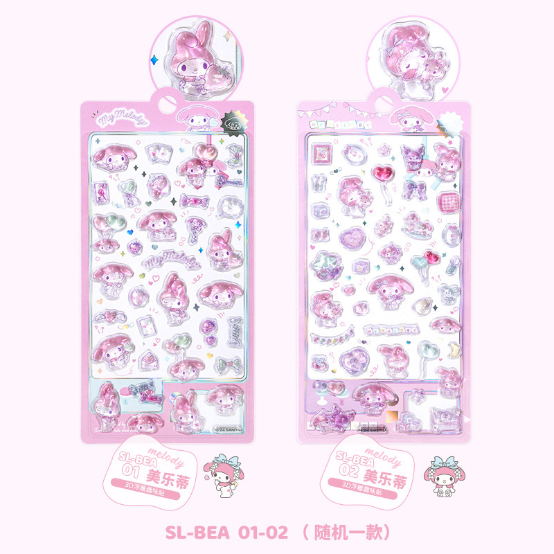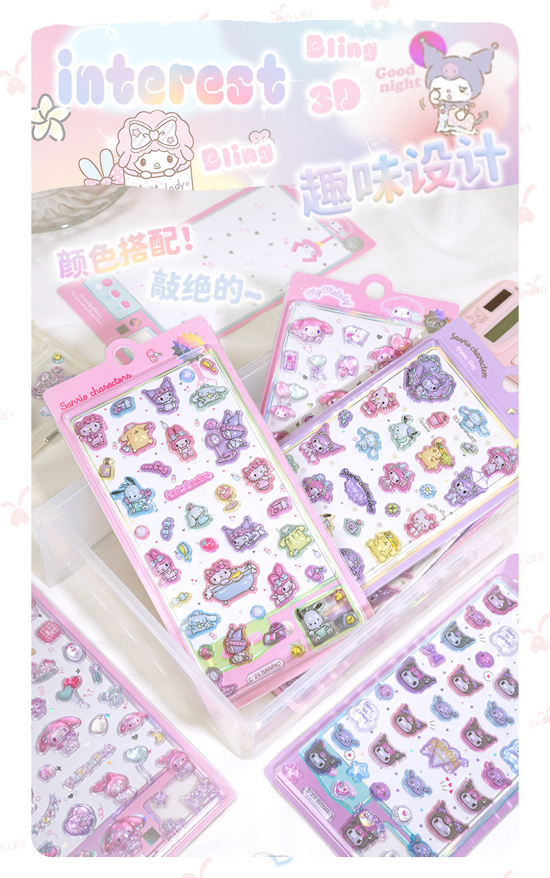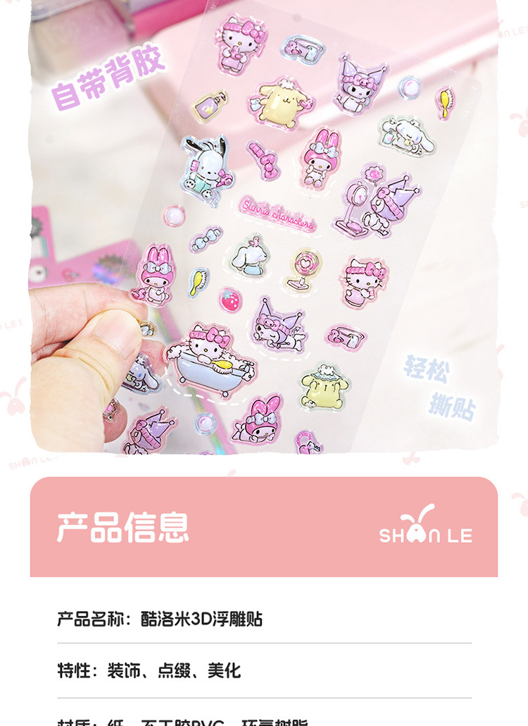 정품 쿨 Luomi Sanrio 3D 구호 재미 스티커 수제 DIY 장식 스티커 아크릴 다이아몬드 스티커스토어 가기