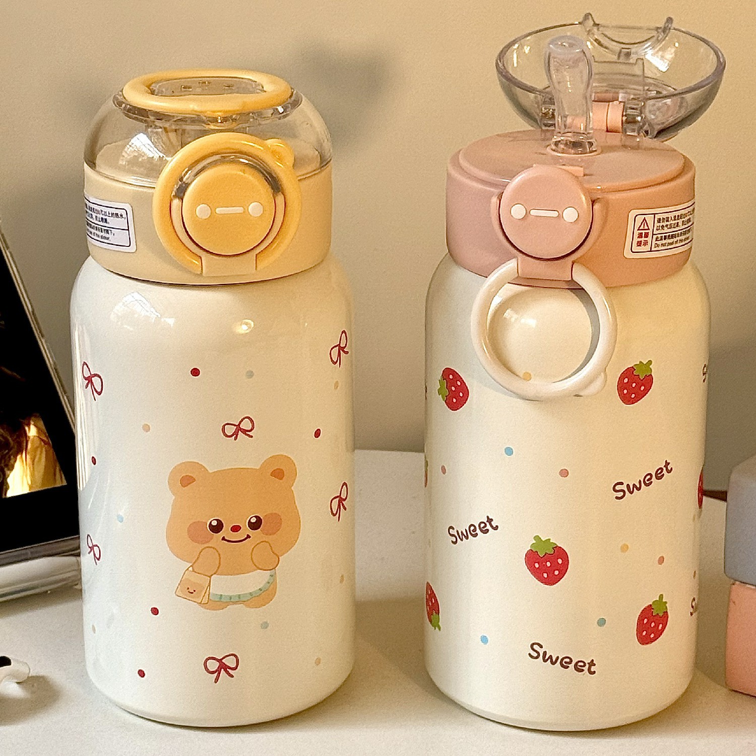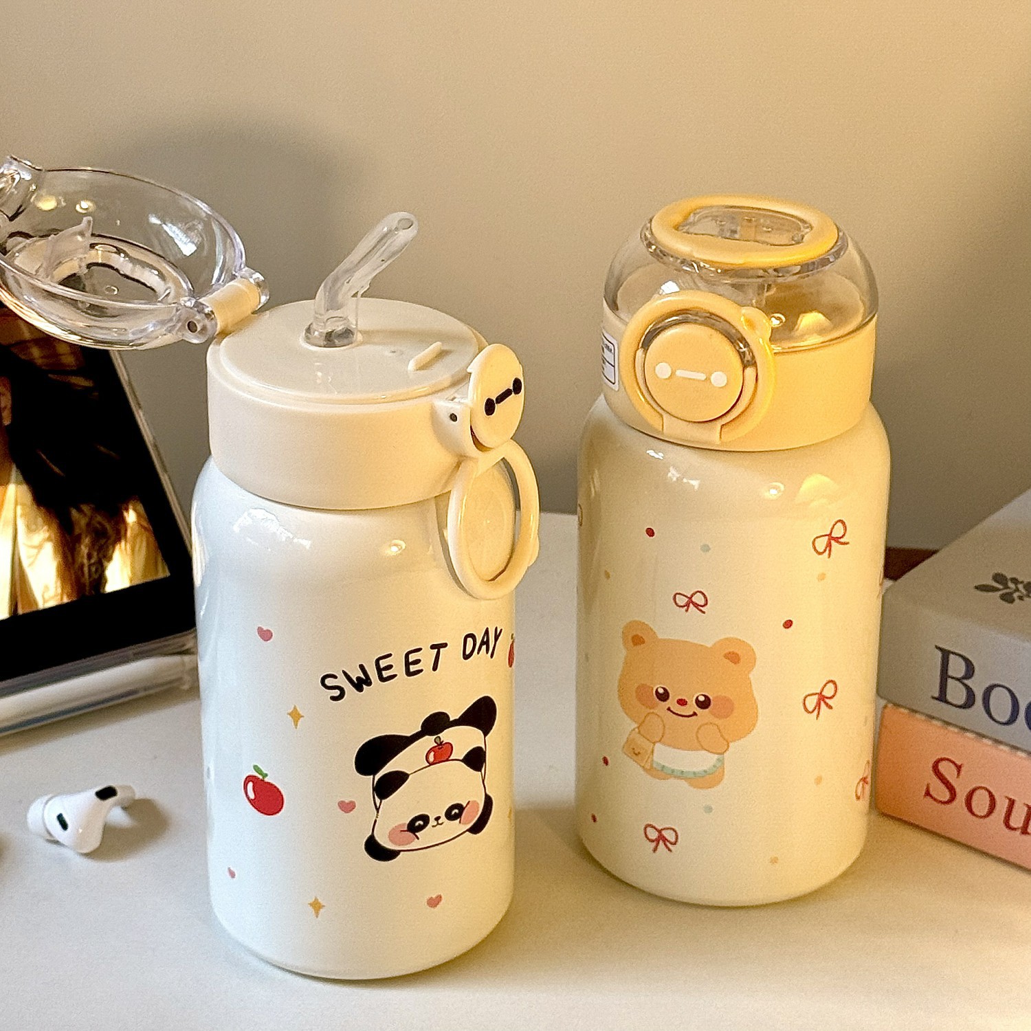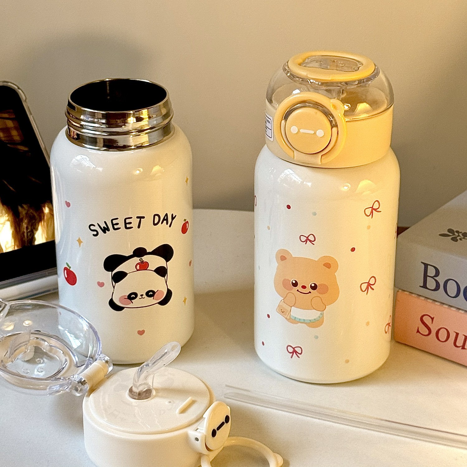 보온병 컵 귀여운 곰 컵 스테인레스 스틸 소녀 높은 가치 대용량 새로운 2024 학생 밀짚 컵스토어 가기