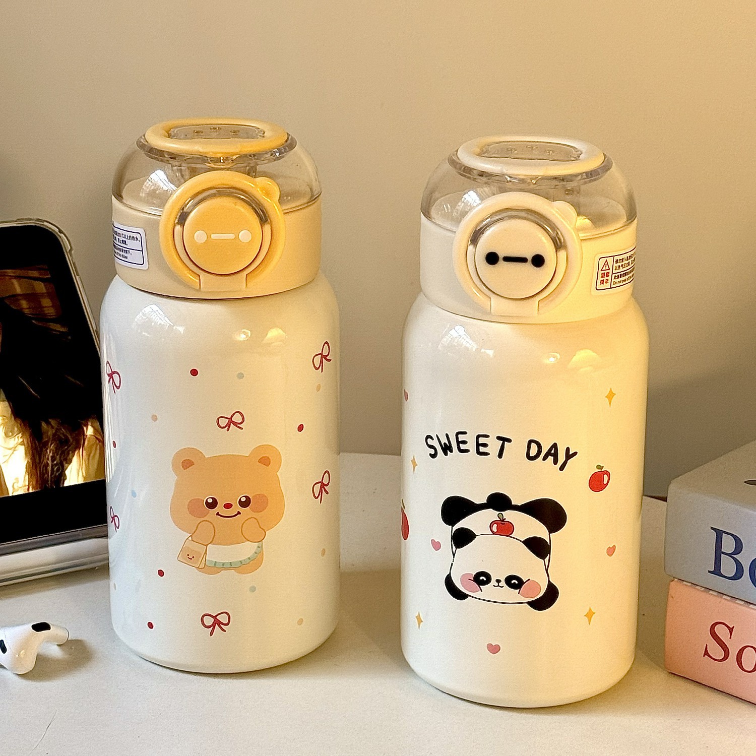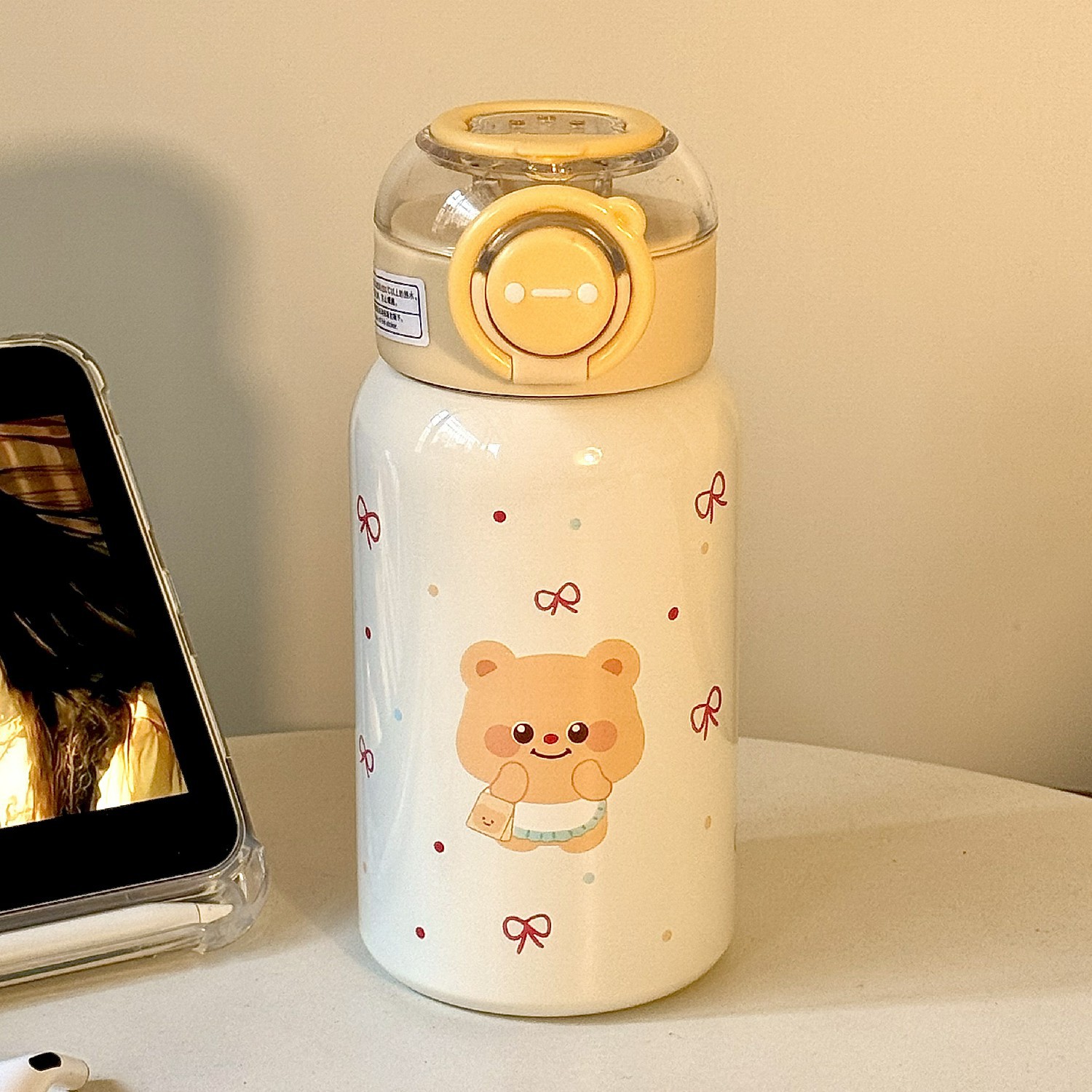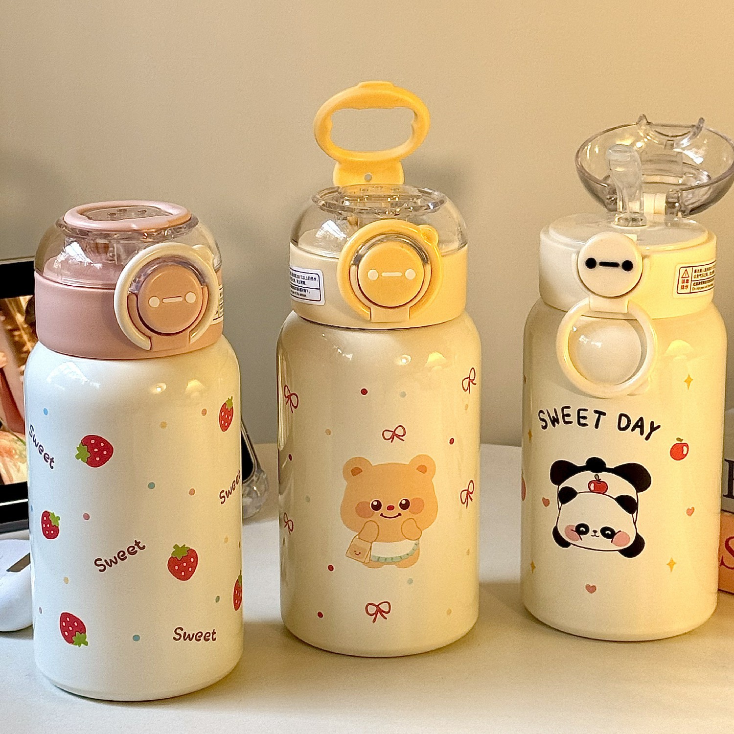 보온병 컵 귀여운 곰 컵 스테인레스 스틸 소녀 높은 가치 대용량 새로운 2024 학생 밀짚 컵스토어 가기