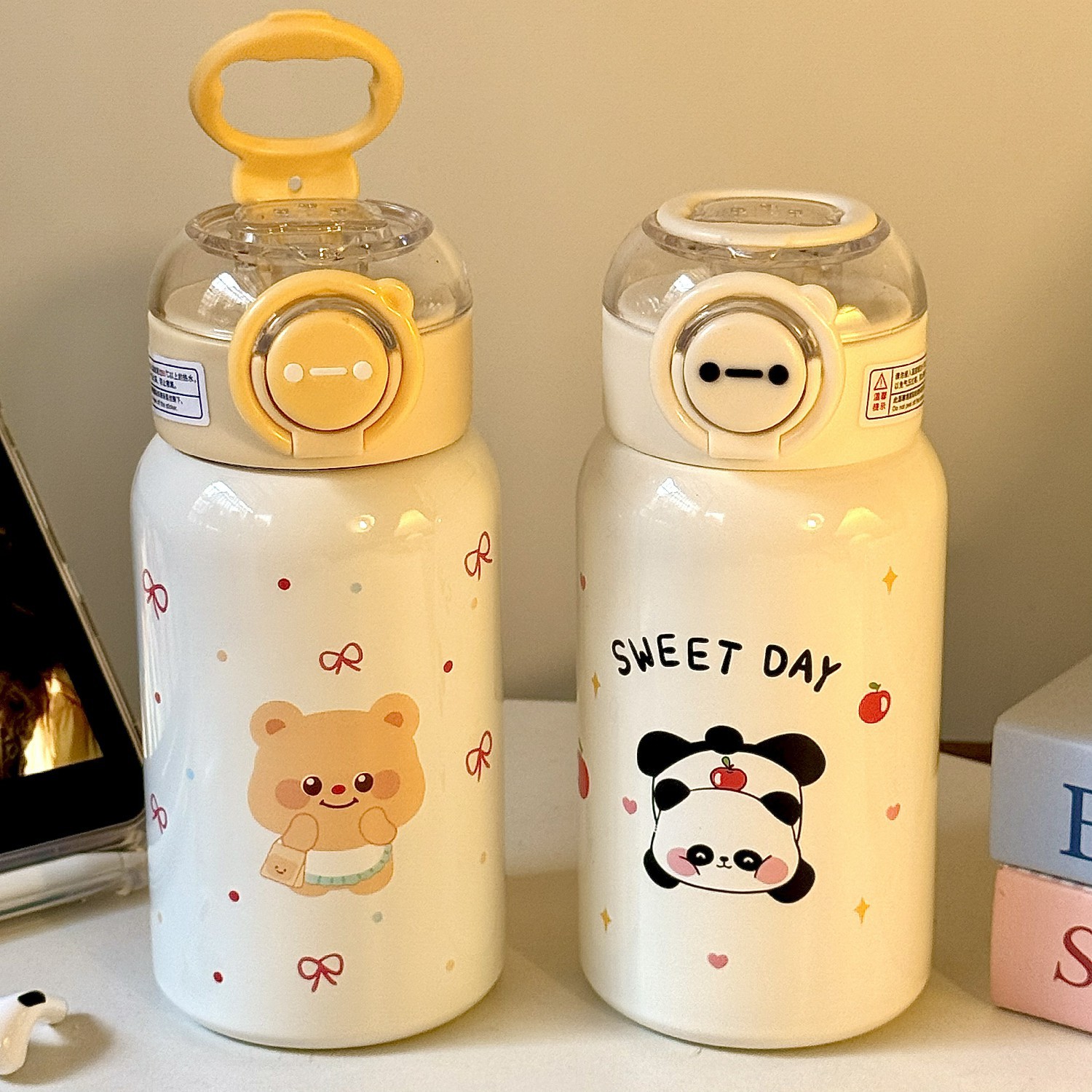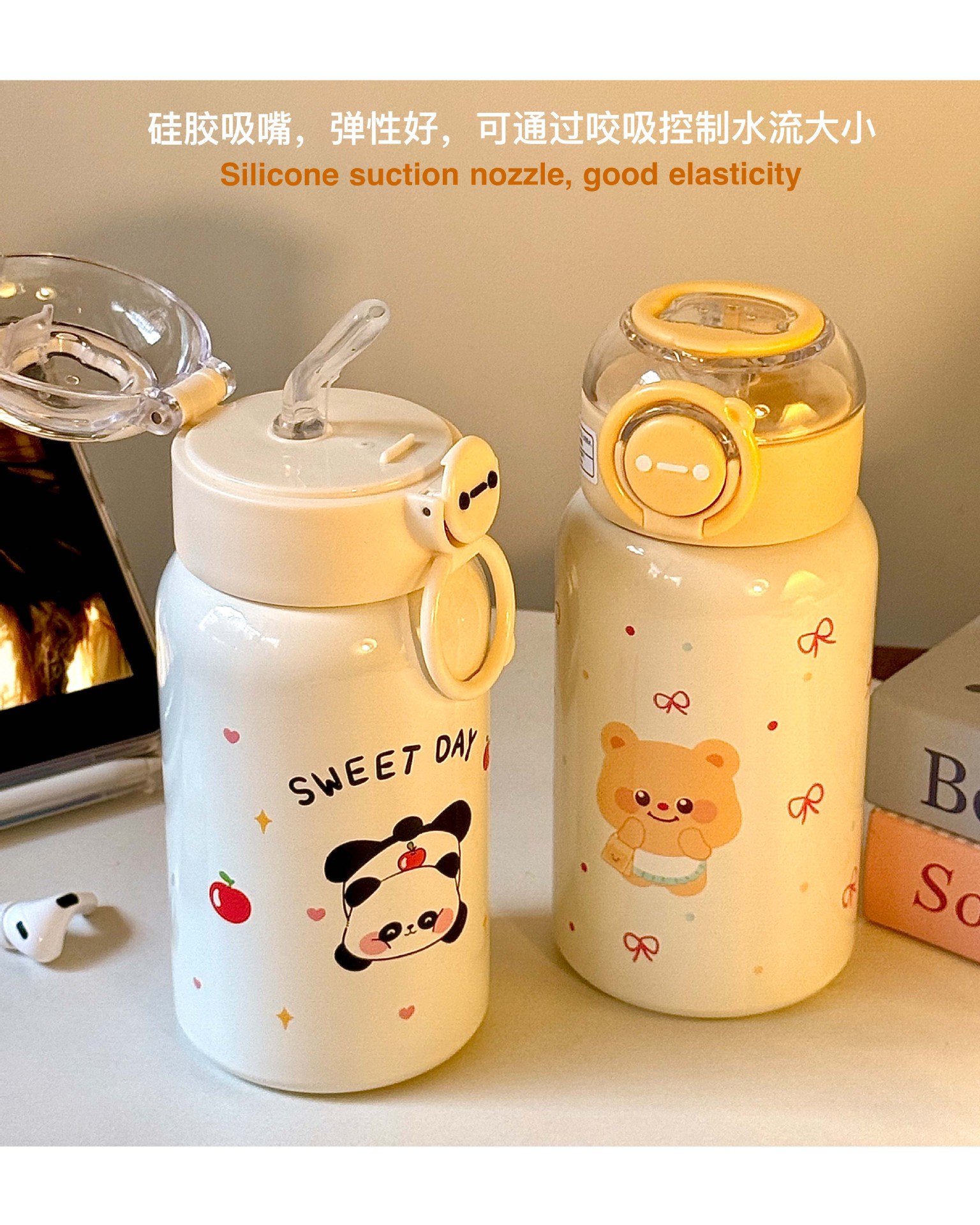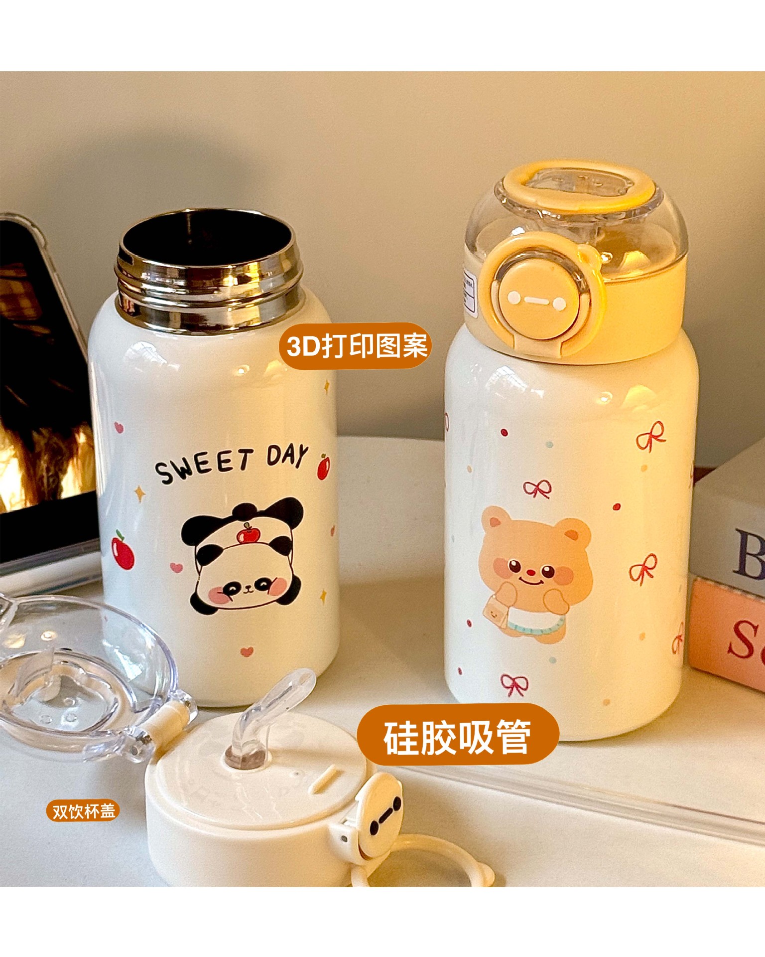 보온병 컵 귀여운 곰 컵 스테인레스 스틸 소녀 높은 가치 대용량 새로운 2024 학생 밀짚 컵