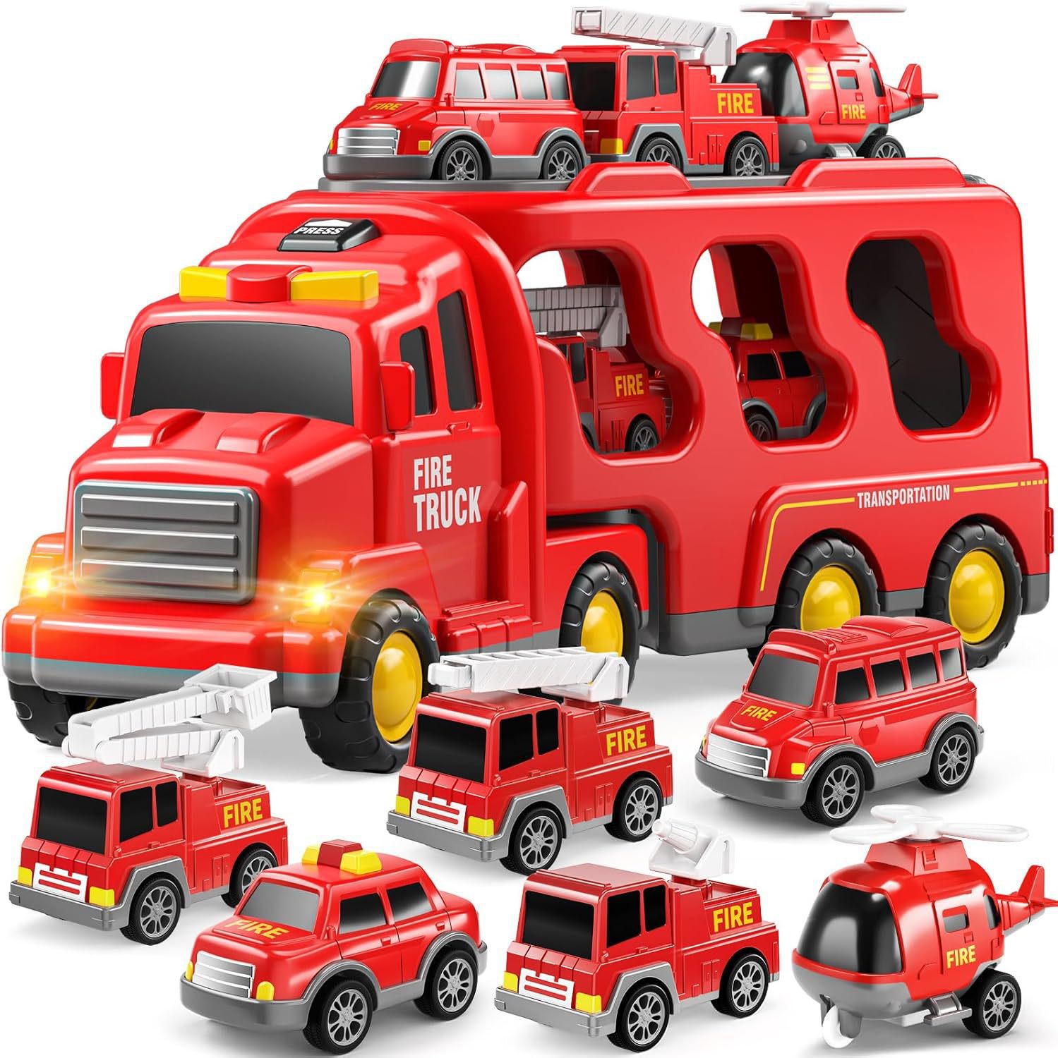 • [빨간색] 7-in-1 소방차(대형차 1대, 소형차 6대)