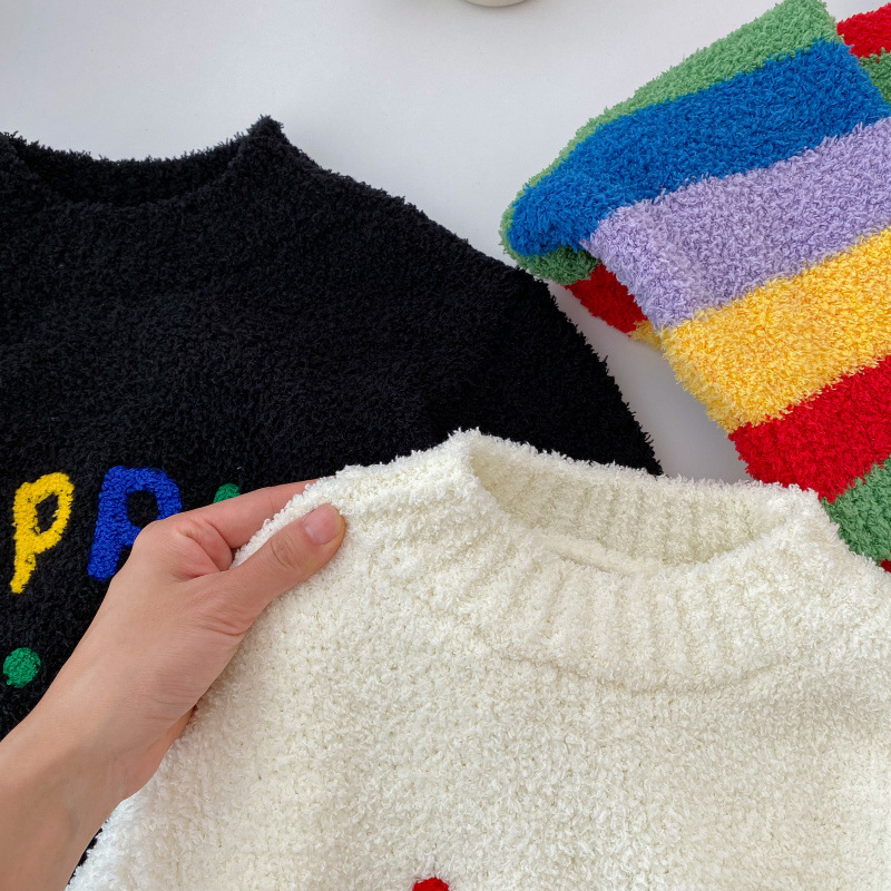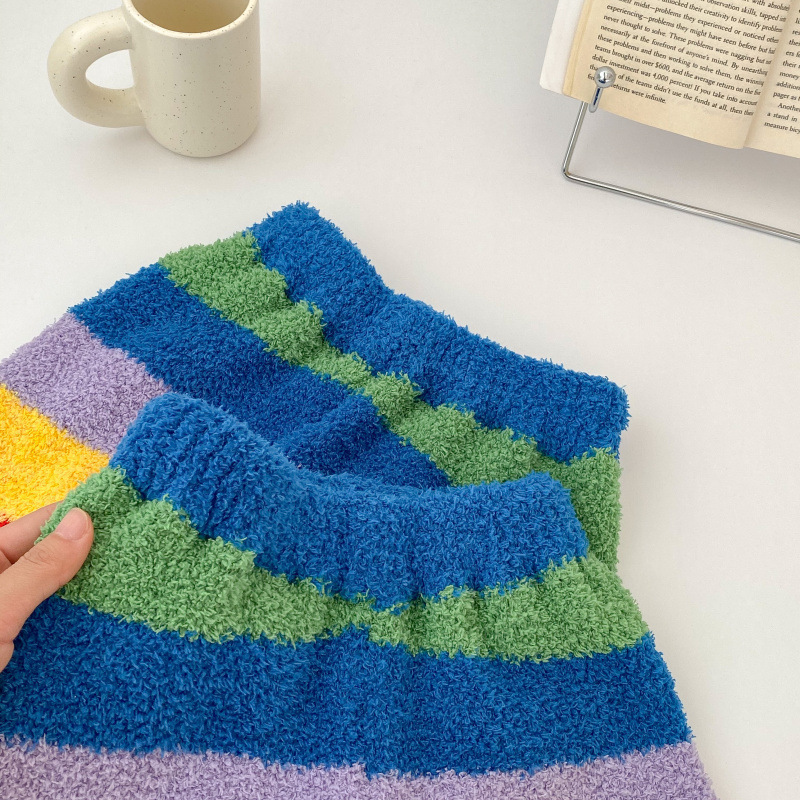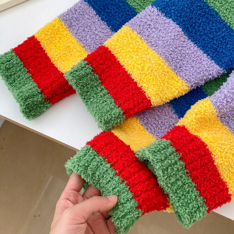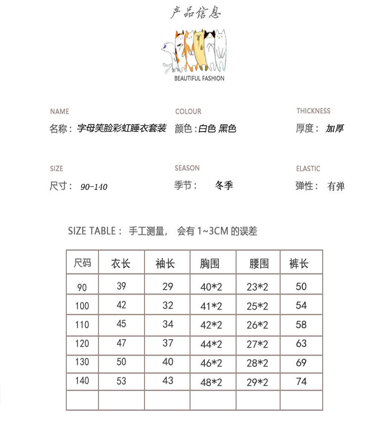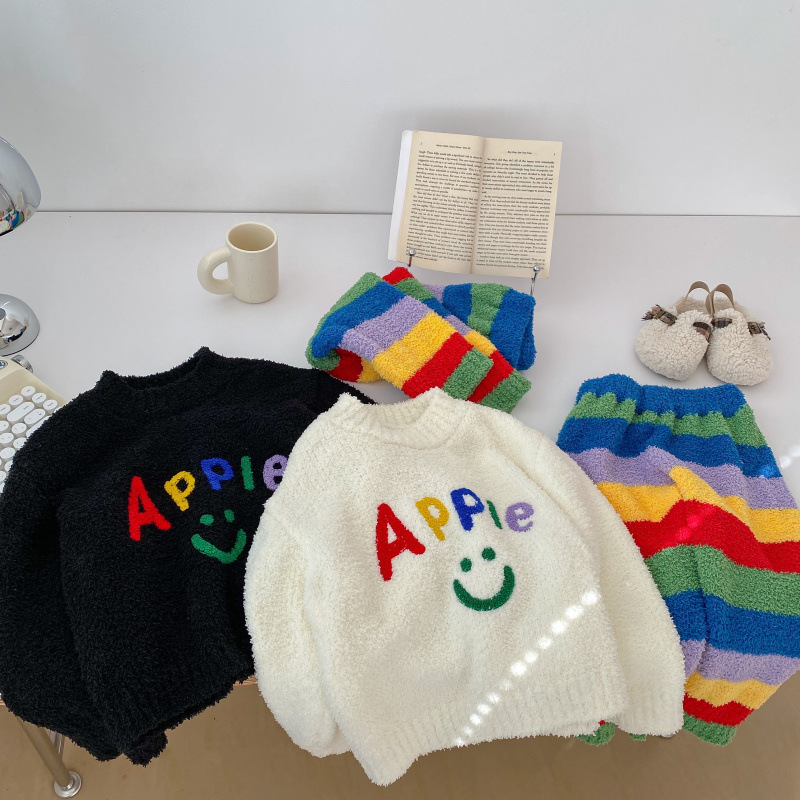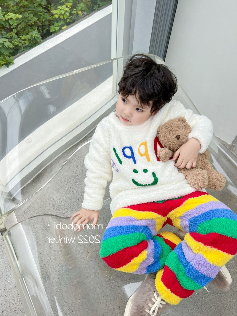 어린이 산호 양털 파자마 소년의 겨울 레인보우 스트립 홈 옷 소년 소녀 두꺼운 부드러운 홈 의류 세트