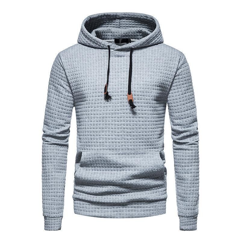 2024 대외 무역 새로운 유럽 사이즈 남성 캐주얼 풀오버 자카드 스웨터 남성용 아마존 격자 무늬 퀼트 면직물 후드