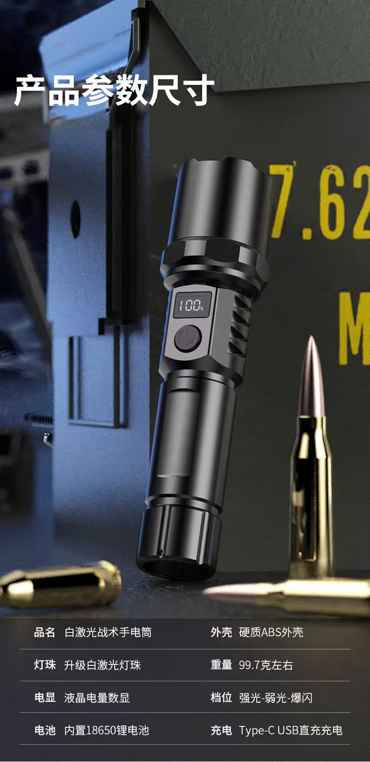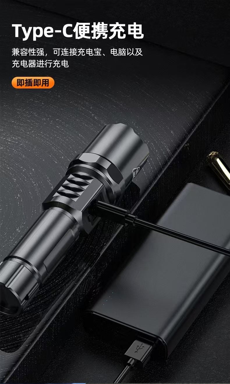 새로운 손전등 슈퍼 밝은 장거리 스포트라이트 LED 램프 야외 휴대용 빠른 충전 출력 텔레스코픽 초점 손전등