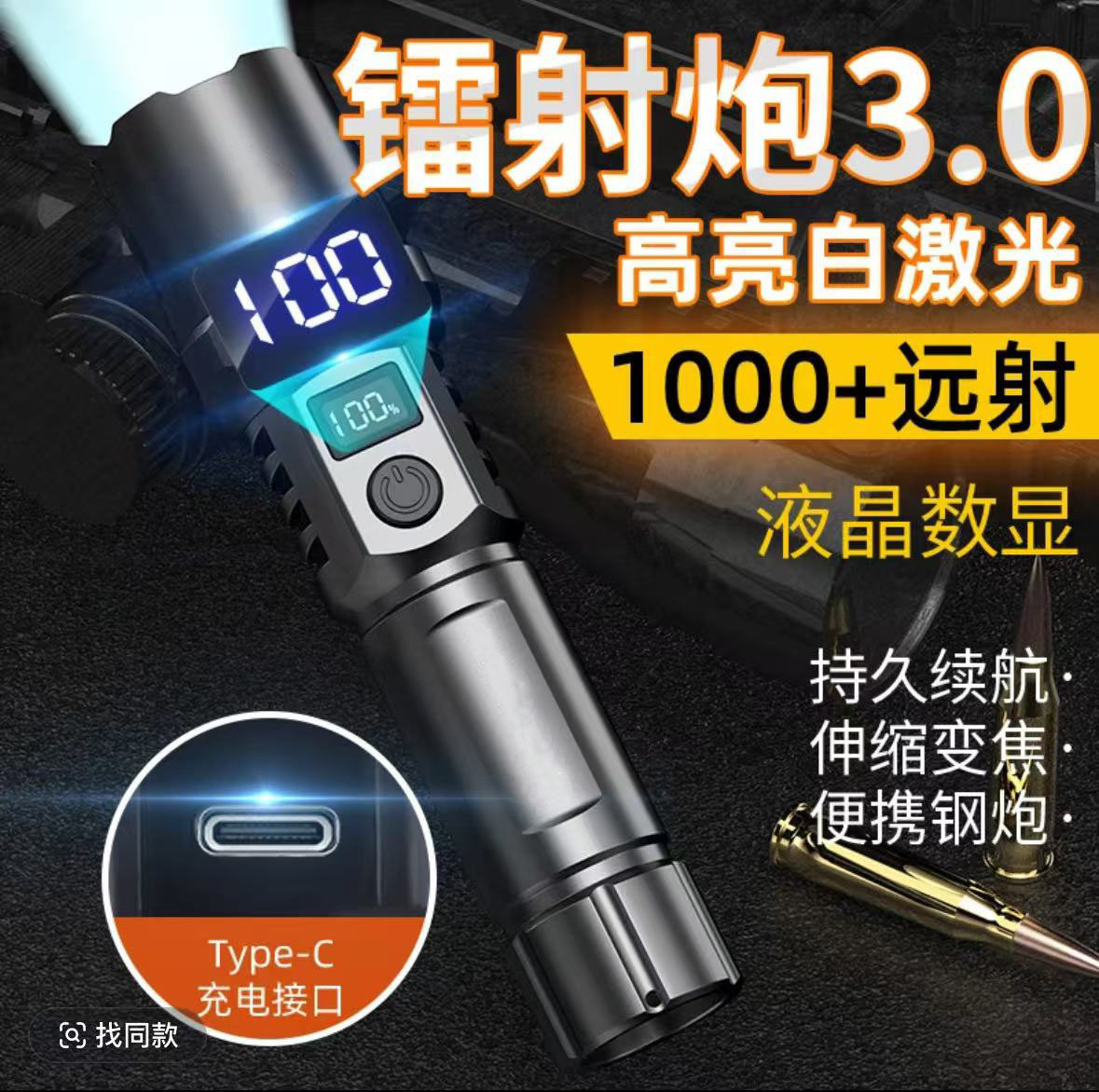 새로운 손전등 슈퍼 밝은 장거리 스포트라이트 LED 램프 야외 휴대용 빠른 충전 출력 텔레스코픽 초점 손전등스토어 가기