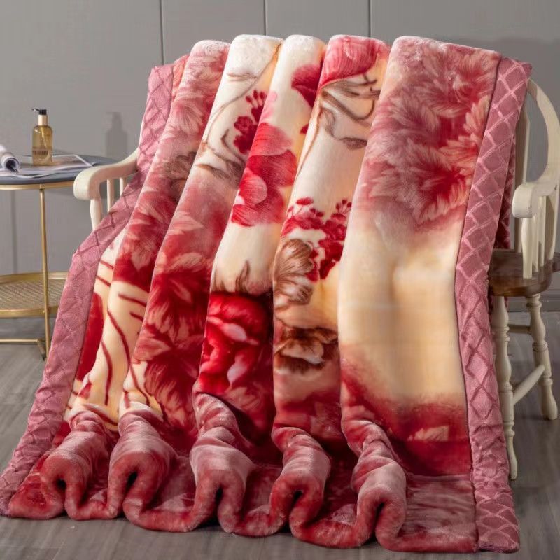 더블 레이어 두꺼운 겨울 라셀 웨딩 담요 퀼트 학생 기숙사 더블 담요 웨딩 담요 레드 담요