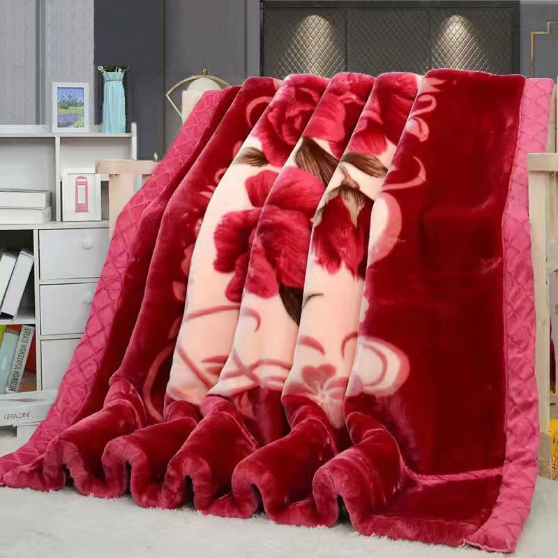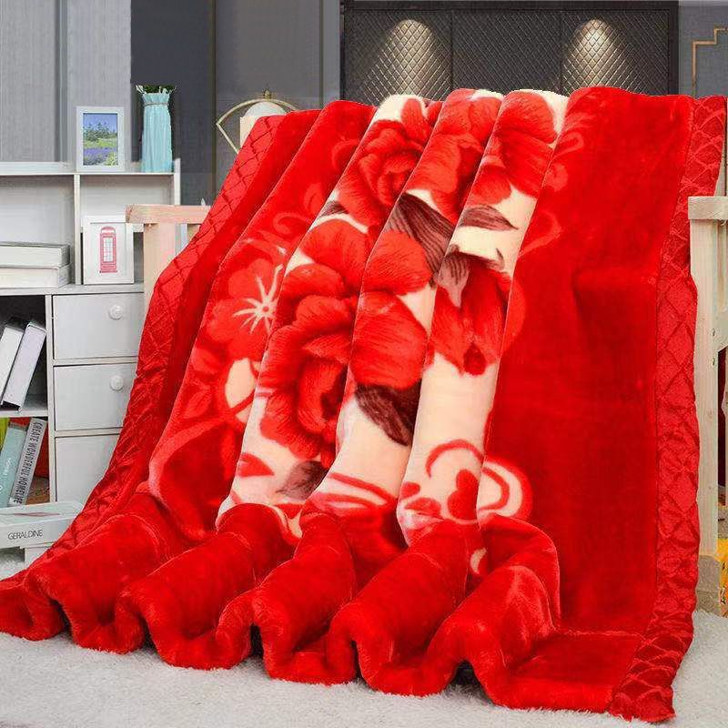 더블 레이어 두꺼운 겨울 라셀 웨딩 담요 퀼트 학생 기숙사 더블 담요 웨딩 담요 레드 담요스토어 가기