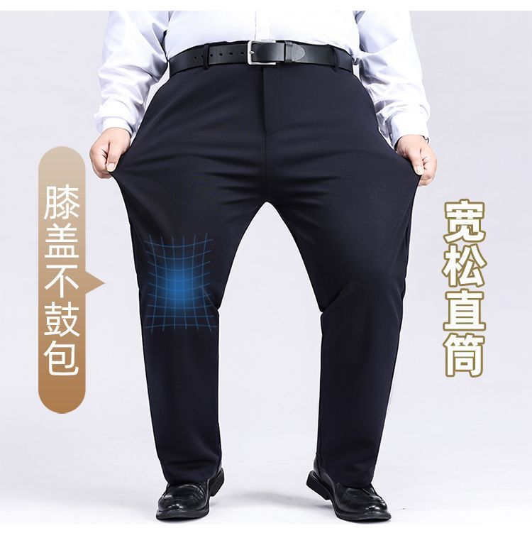 추가 대형 바지 남자 바지 남자 스트레치 플러스 사이즈 바지 남자 중년 느슨한 스트레이트 캐주얼 바지 기모 두껍게스토어 가기
