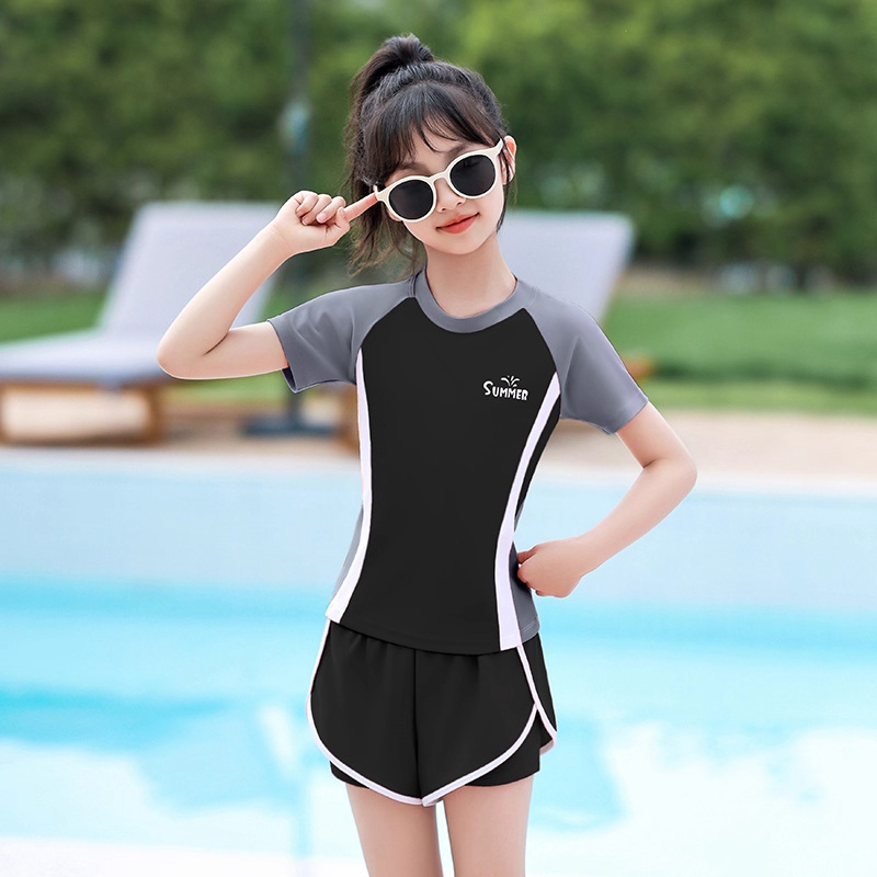 어린이 수영복 분할 대형 키즈 십대 소녀 수영복 여자 전문 수영 훈련 수영복 세트