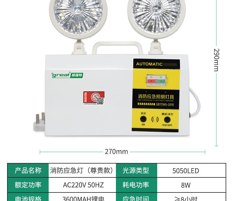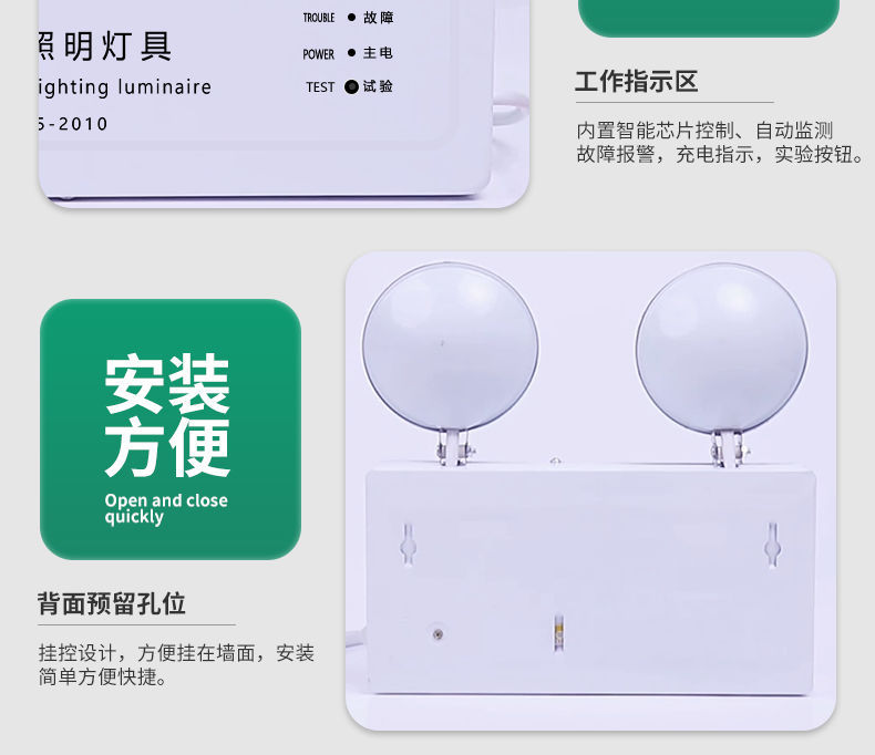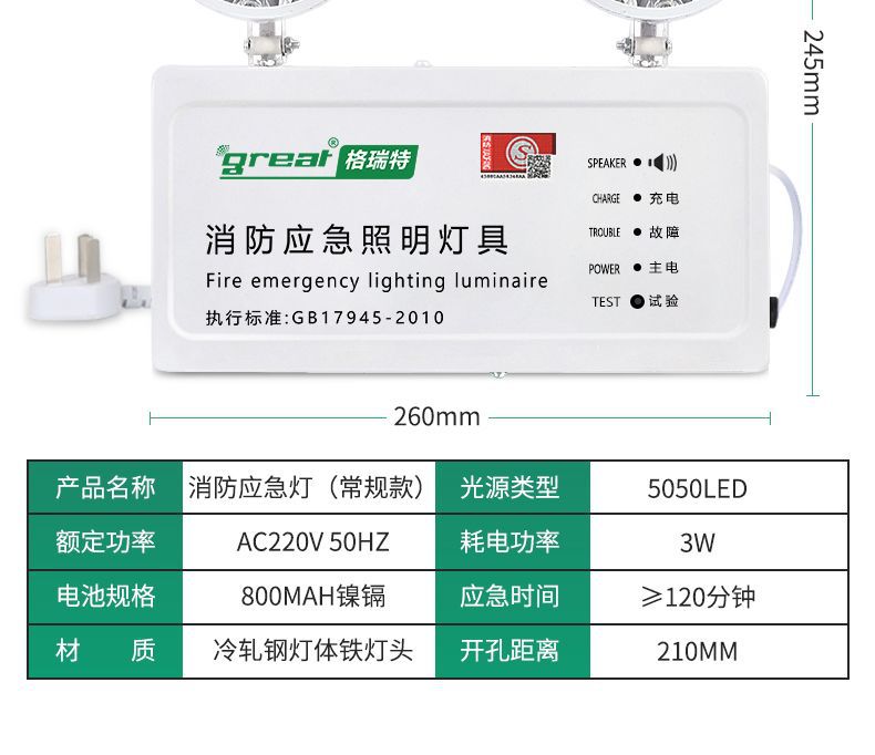 화재 비상 조명 새로운 국가 표준 주도 안전 출구 표시기 다기능 2 대 1 양두 비상 조명스토어 가기