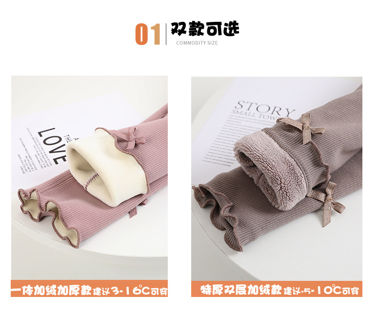 여아용 두꺼운 벨벳 두꺼운 레깅스, 아동용 겨울 면바지 820g, 두꺼운 리본, 다용도스토어 가기