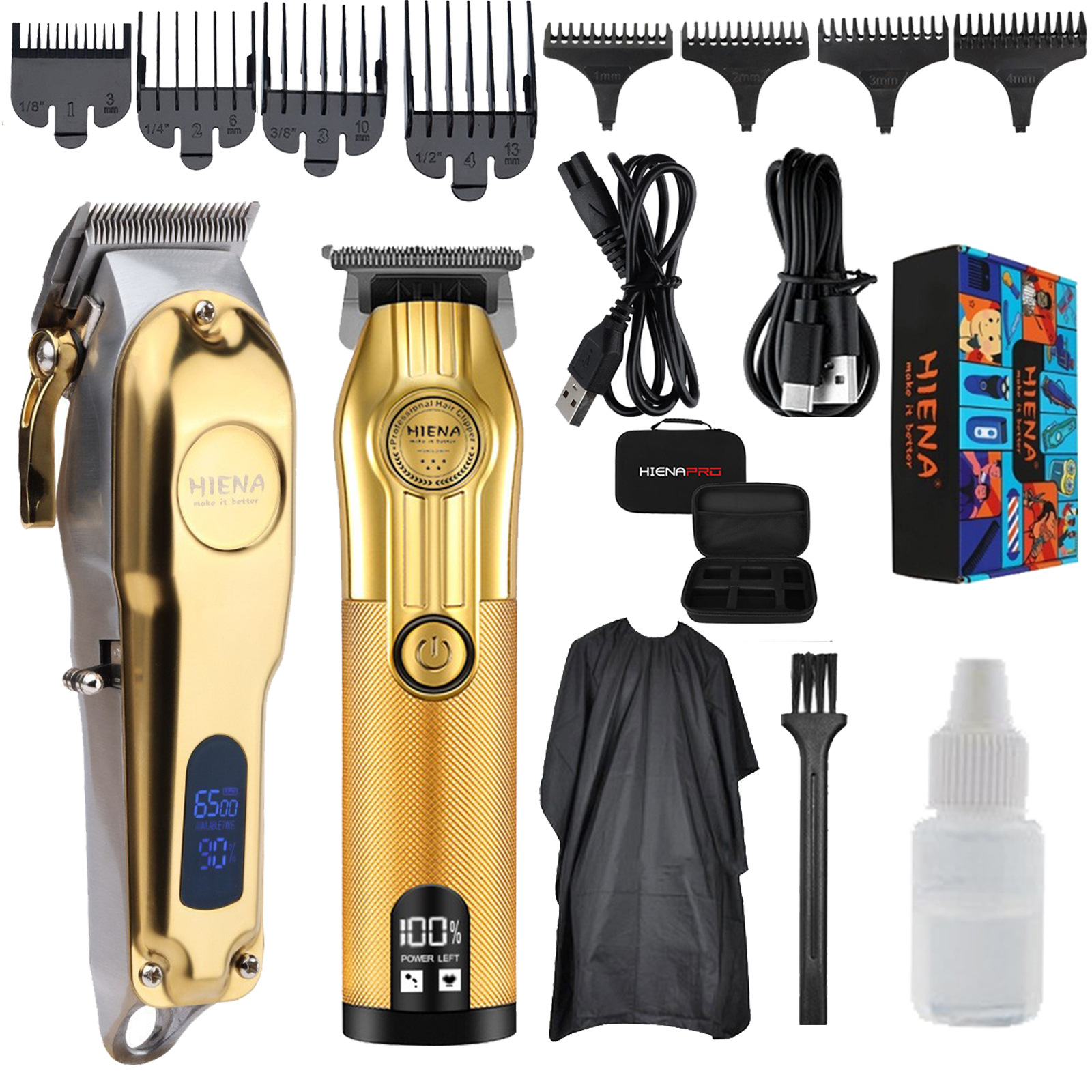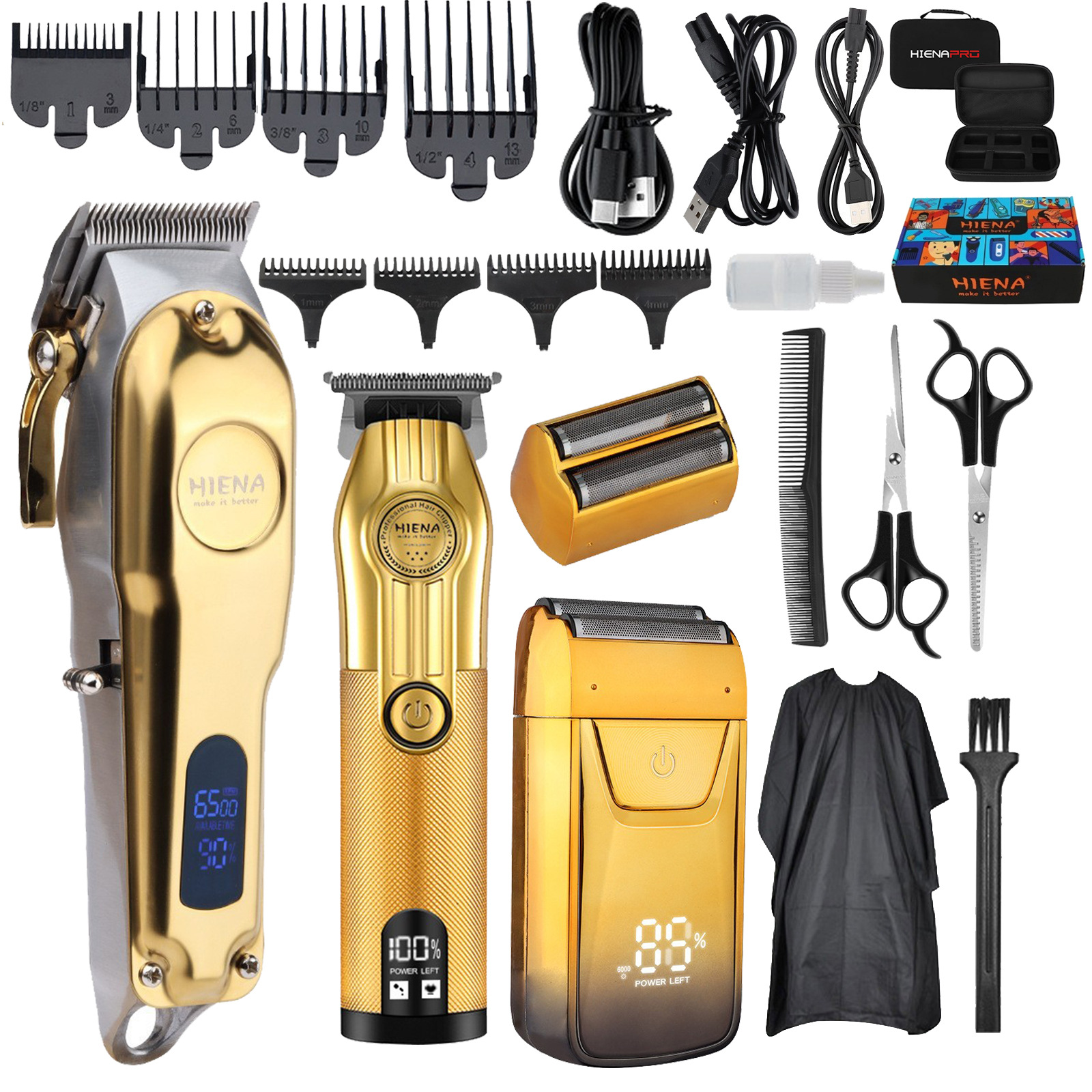 • HYN-202 골드 + HYN-601 골드 + HYN-312 골드 + 천 + 표준 헤어 클리퍼 가방 + 그래피티 비행기 상자