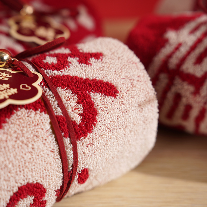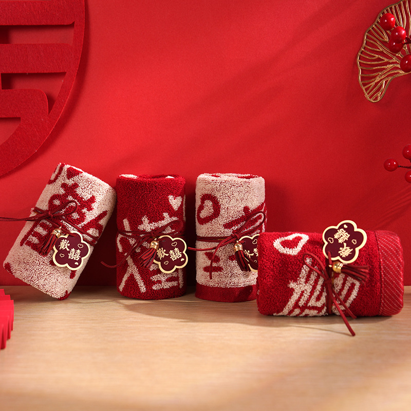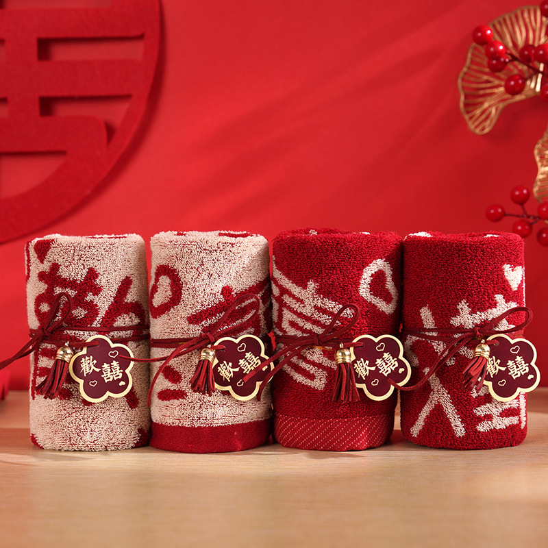 순수한면 손 선물 수건 빨간 결혼식 사탕 공급 노동절 선물 빨간 수건 결혼식 도매스토어 가기