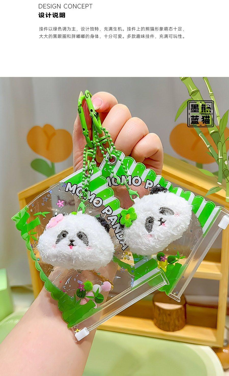 원래 정품 잉크 블루 팬더 곰 Youcheng 대나무 만화 키 체인 펜던트 귀여운 작은 교수형 선물 도매스토어 가기