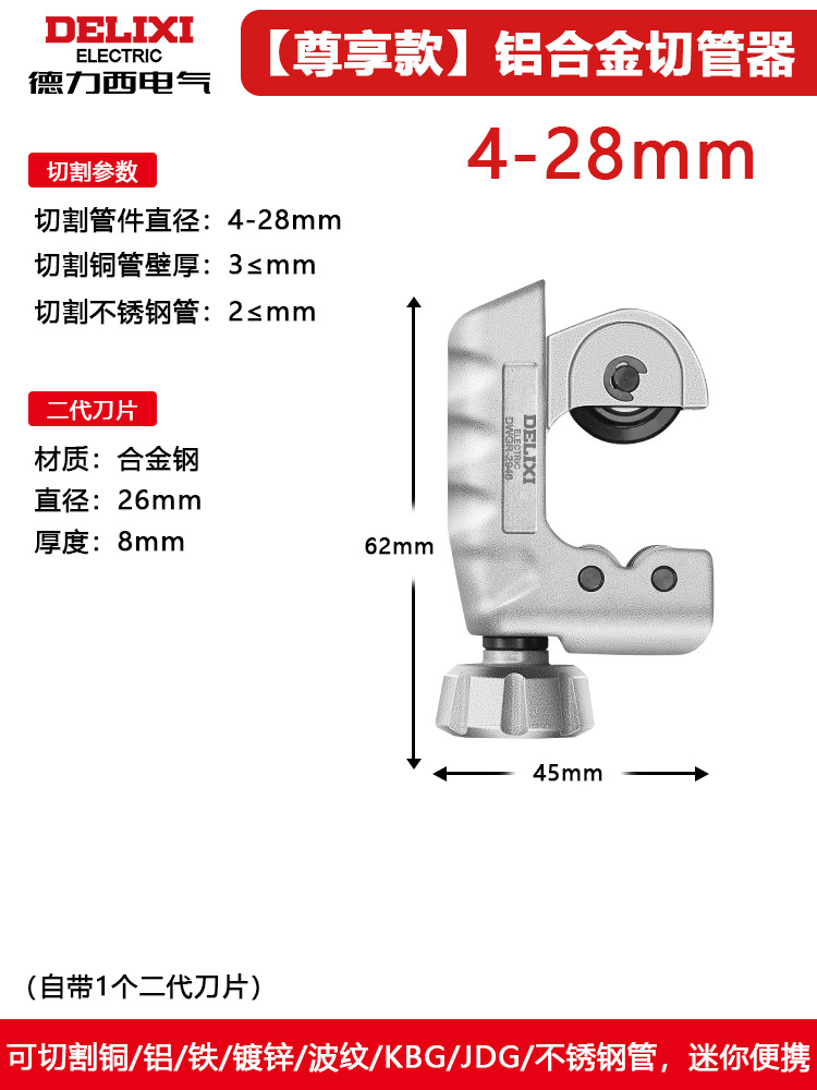 • Delixi 전용 모델 파이프 커터 [알루미늄 합금] 4-28mm