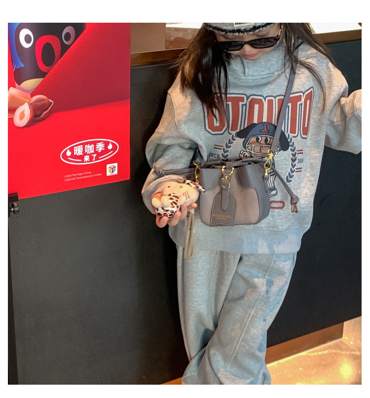 어린이 어깨 가방 소녀의 2024 가을과 겨울 패션 새로운 스타일 대비 컬러 크로스 바디 가방 소녀의 여행 동전 지갑스토어 가기