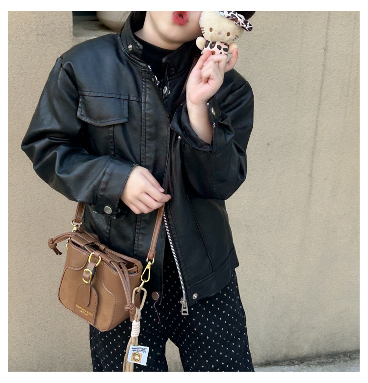 어린이 어깨 가방 소녀의 2024 가을과 겨울 패션 새로운 스타일 대비 컬러 크로스 바디 가방 소녀의 여행 동전 지갑