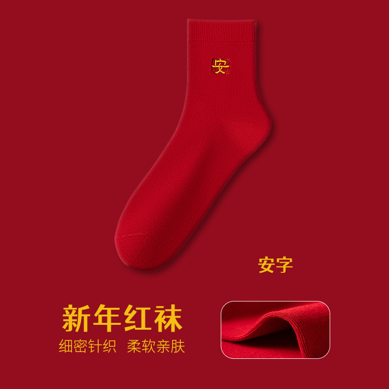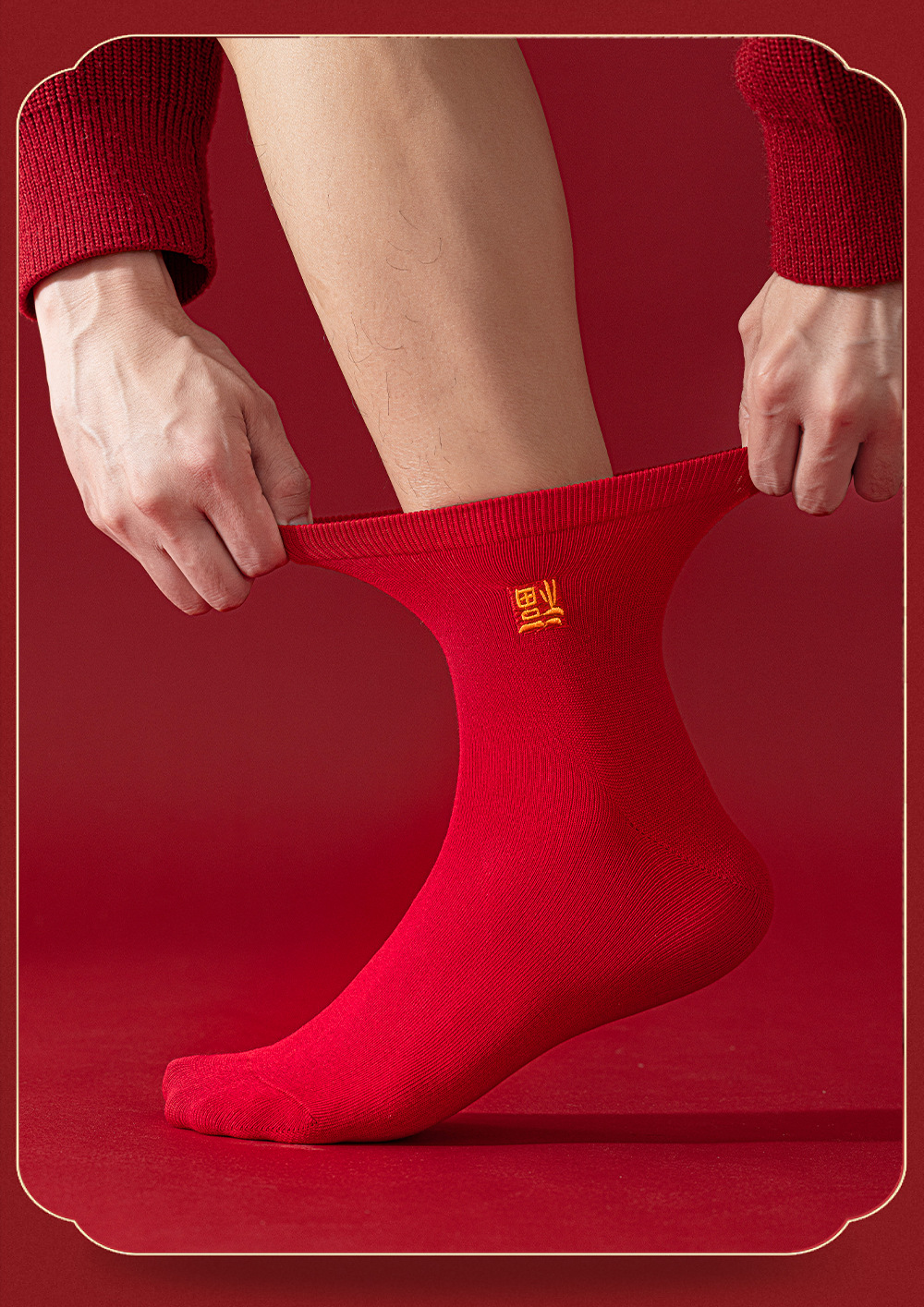 올해 빨간 양말 남성 가을과 겨울 양말 새해 자수 양말 도매 긴 포춘 양말 남성 양말