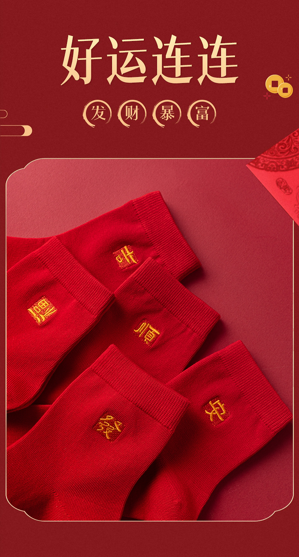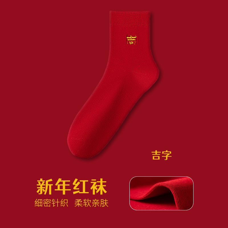 올해 빨간 양말 남성 가을과 겨울 양말 새해 자수 양말 도매 긴 포춘 양말 남성 양말스토어 가기