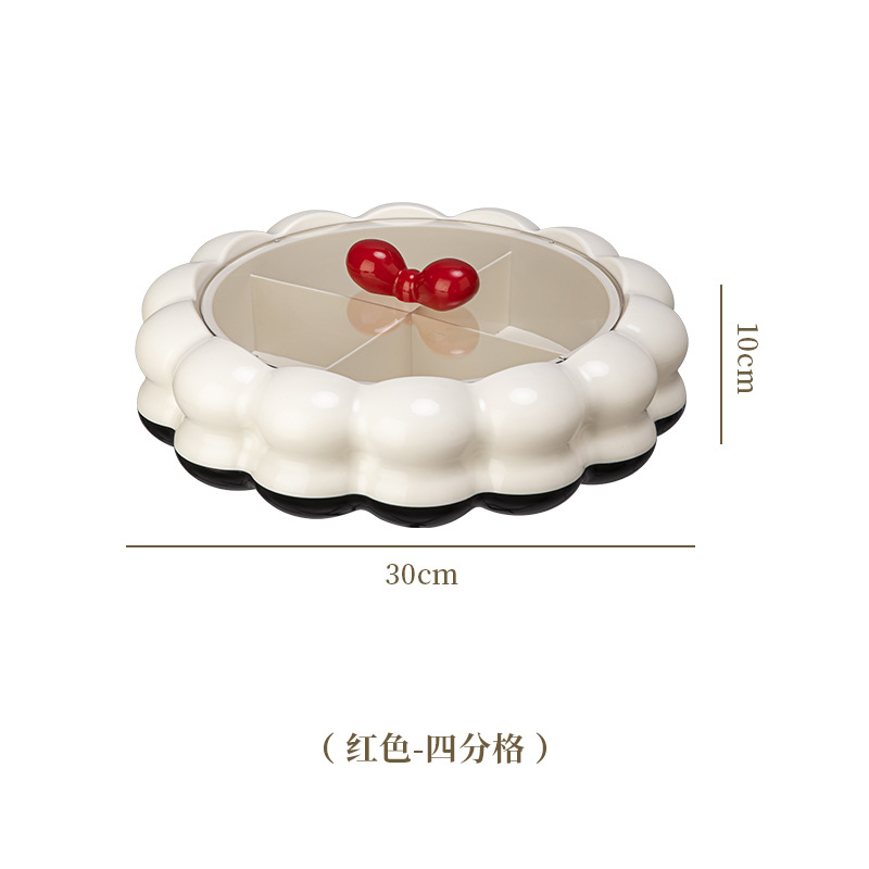 • 8099-3 그리드가 없는 흰색과 검정색 구름 과일 접시(빨간 리본)