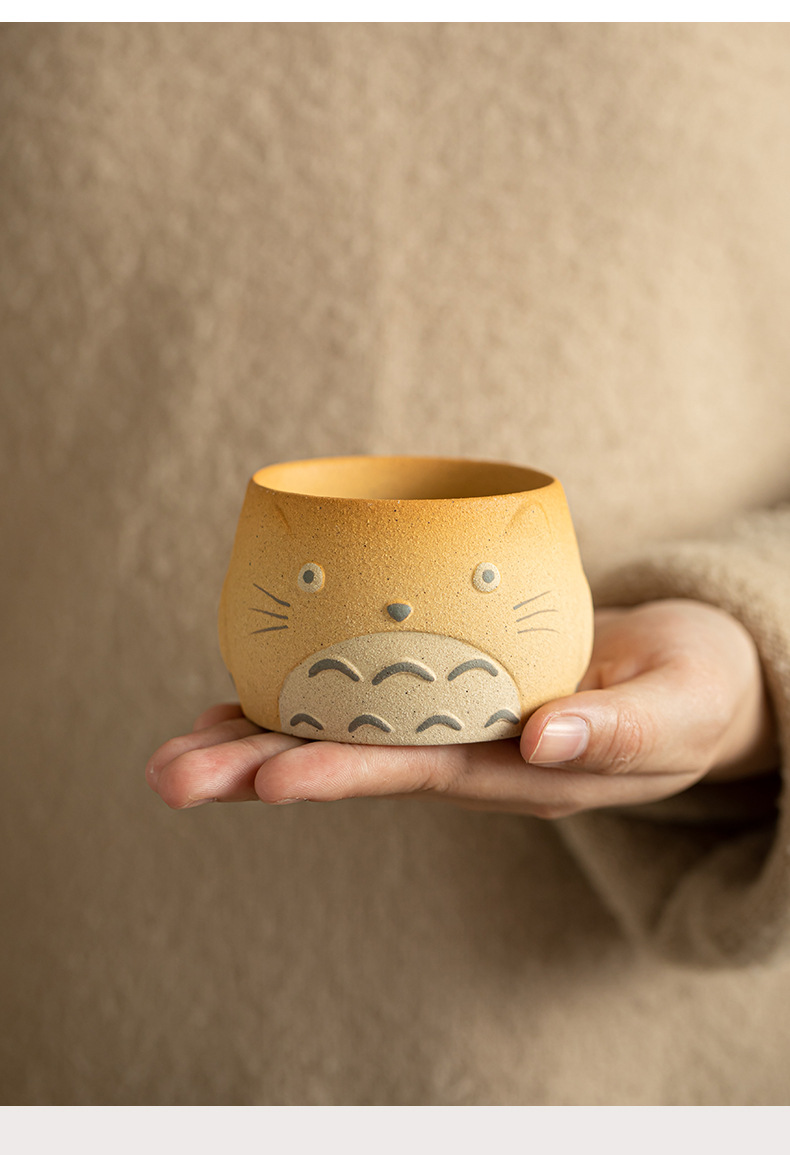 蕴华堂 卡通手绘龙猫主人杯围炉煮茶品茗杯家用粗陶功夫茶杯单杯