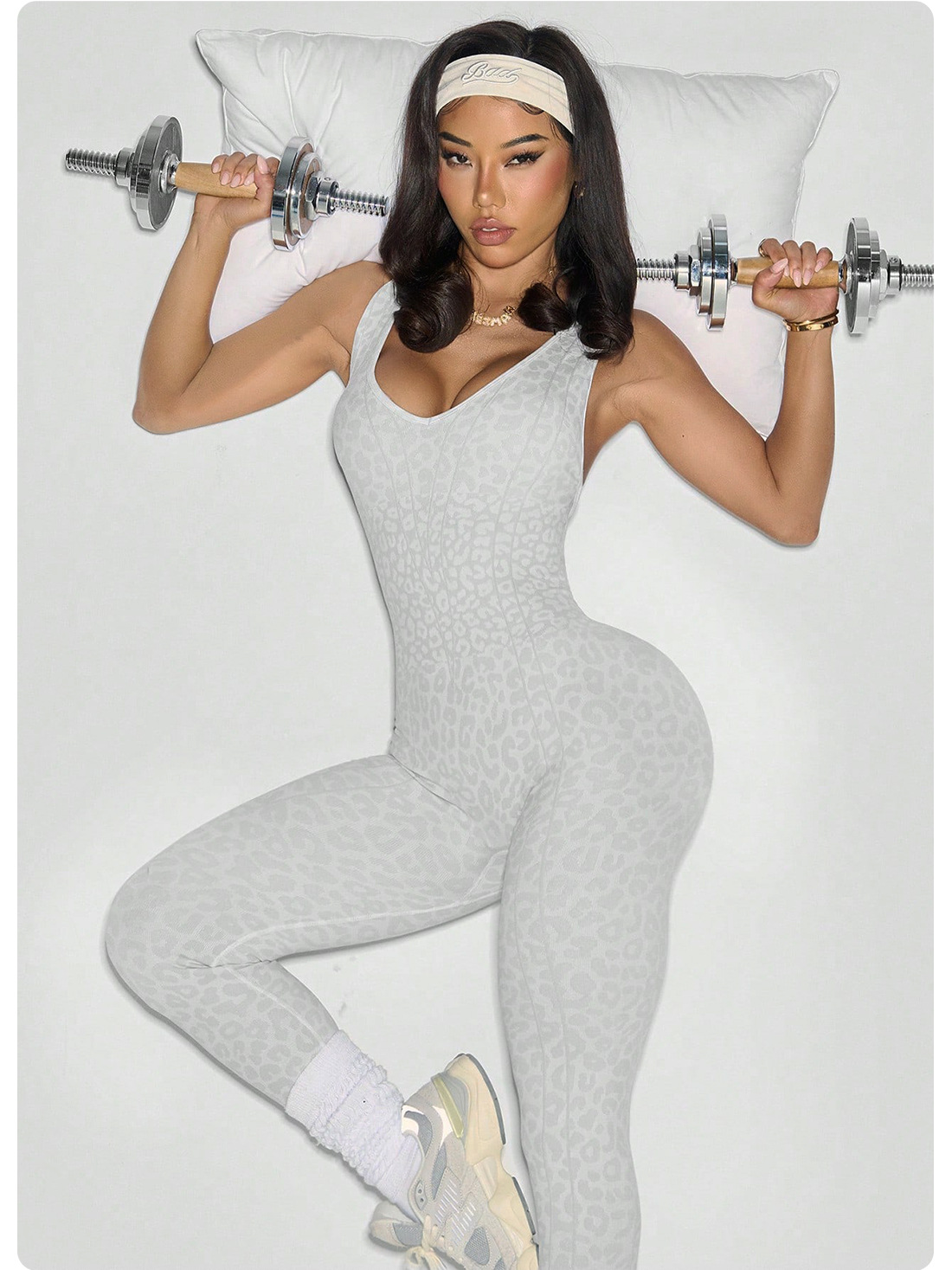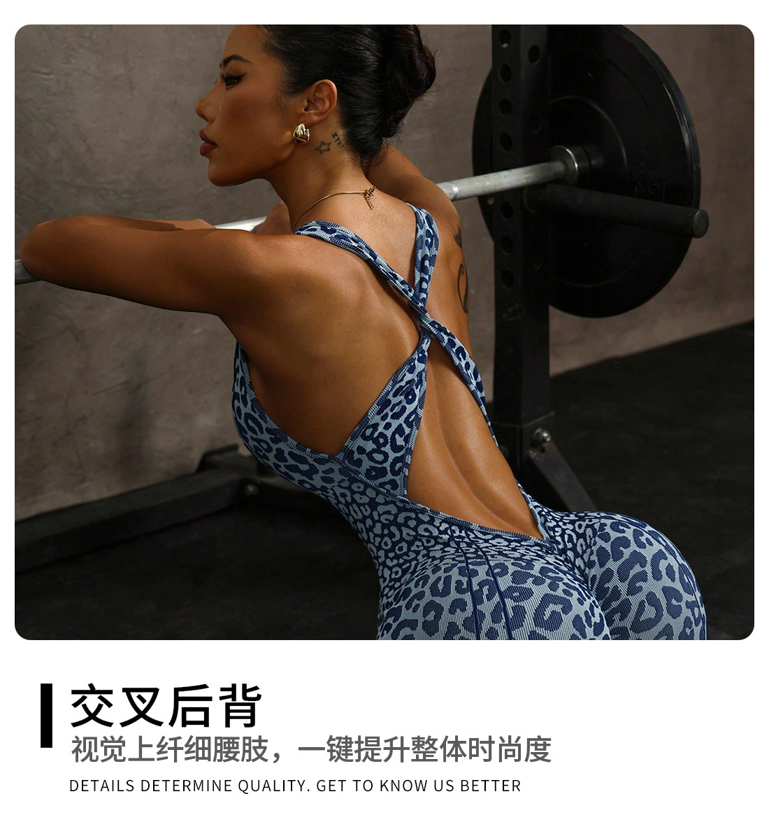 국경 간 유럽 및 미국 무역 여성복 레오파드 프린트 백리스 피트니스 스포츠 원피스 요가복 여성 요가 원피스 요가 팬츠