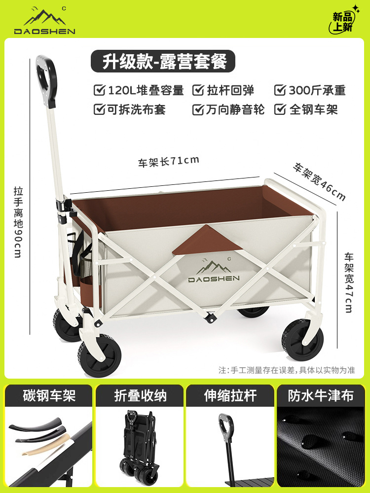 야외 캠핑카 스톨 대형 캠핑 접이식 대용량 트롤리 카트 피크닉 경량 여행 트레일러